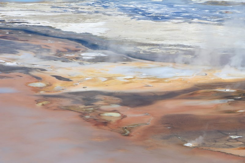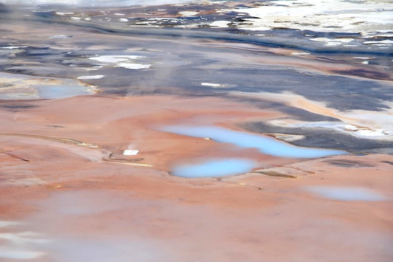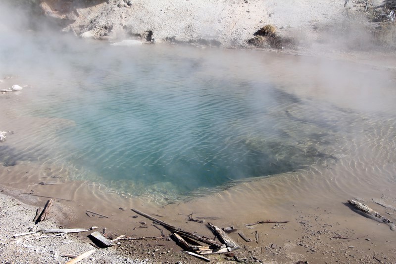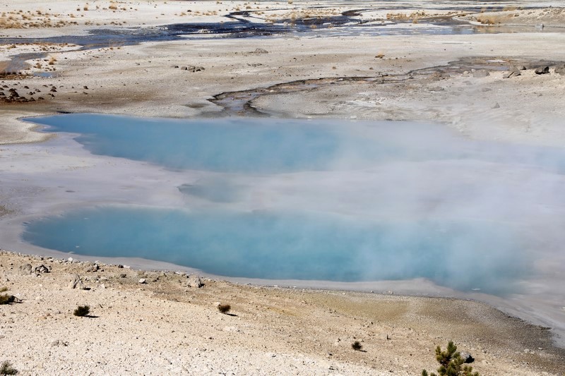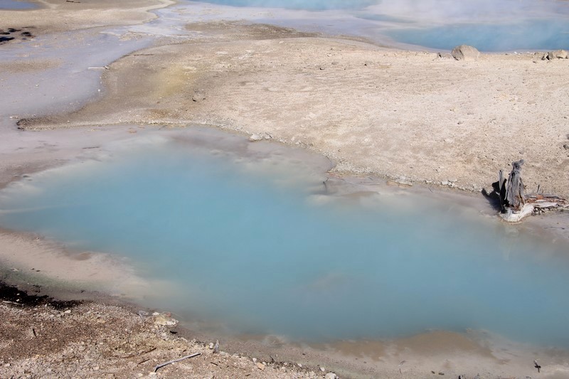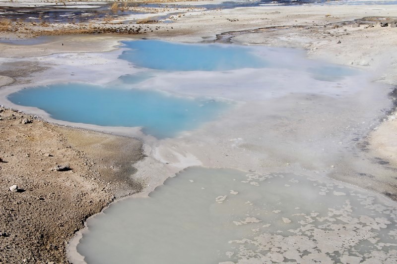 Cette partie du parc est toute en bassins d'un bleu profond, bouillonnements, fumerolles stridentes ou silencieuses et rivières aux diverses couleurs.