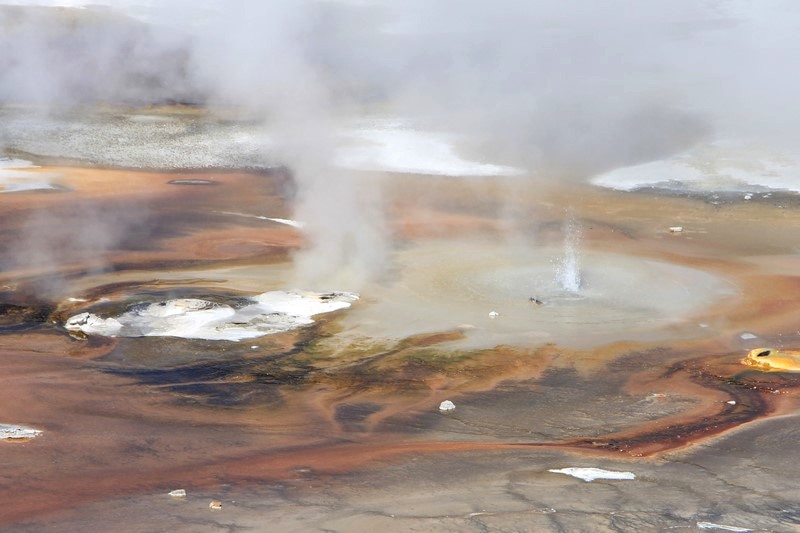 Babé est un peu déçu parce qu'il n'y a pas de geyser qui explose, mais on se fait bien plaisir à découvrir ces activités volcaniques surprenantes.