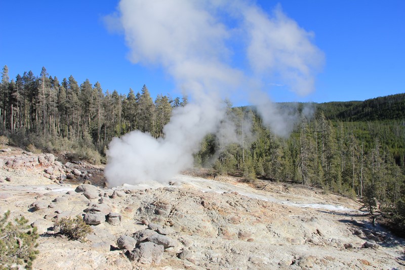 Dépités, on fait demi tour et on décide de se rendre vers le Norris Geyser Basin dans l'espoir de voir des geysers.