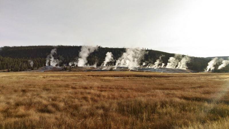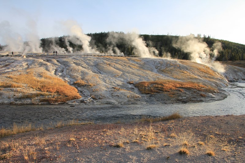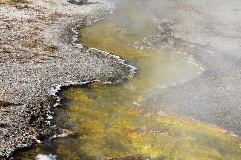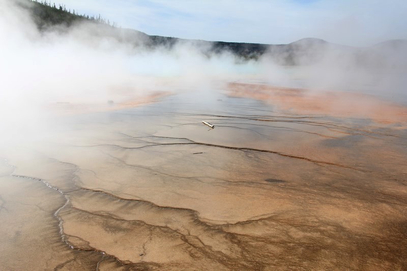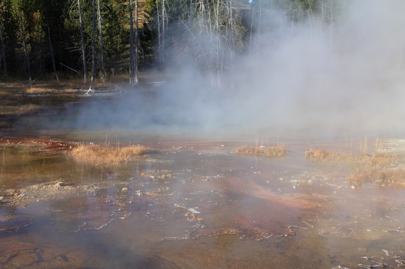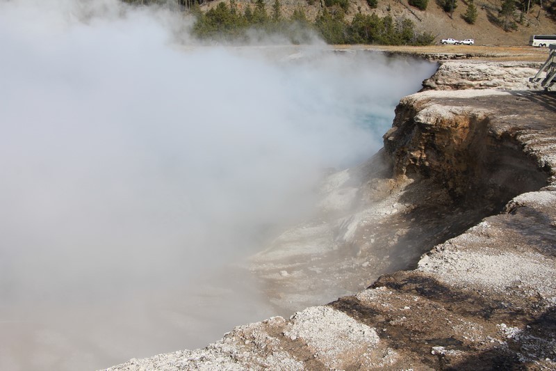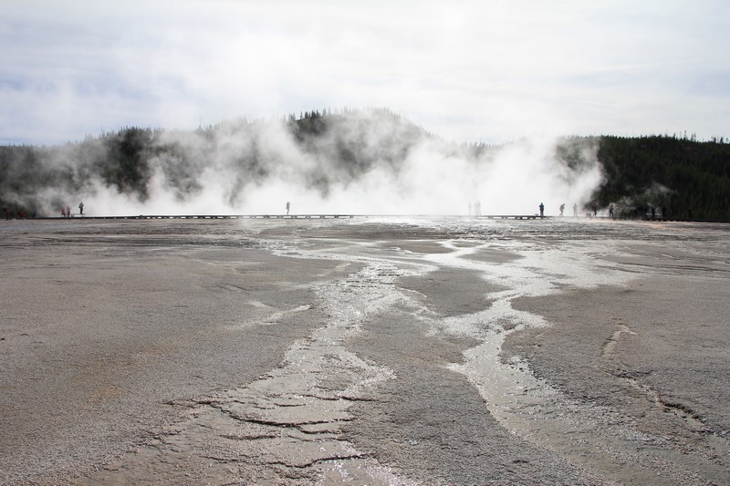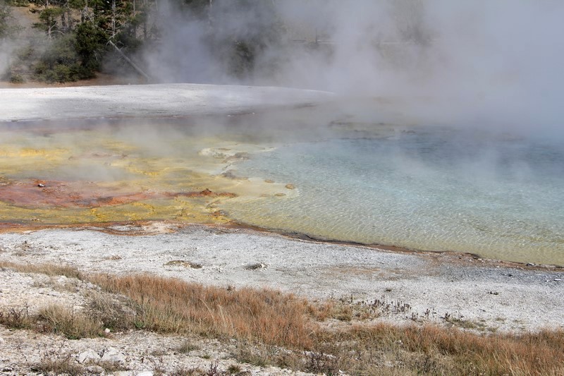 La visite du Midway Geyser Basin se fait au milieu des vapeurs. On ne voit pas grand chose.