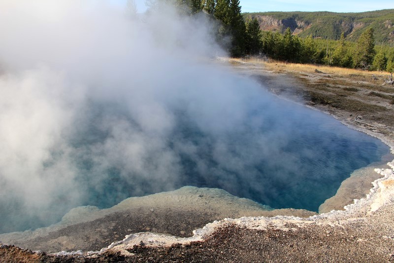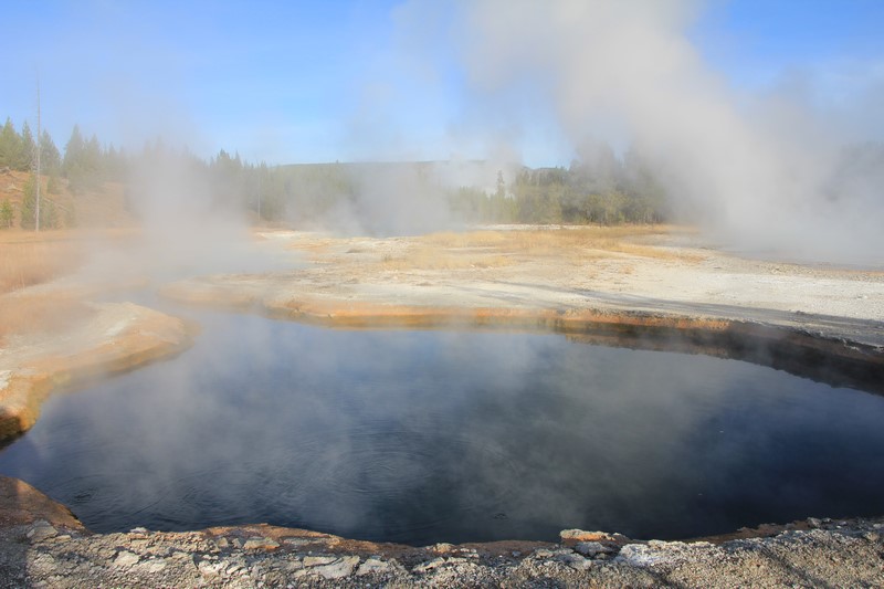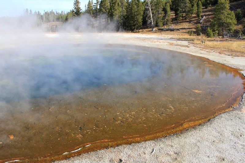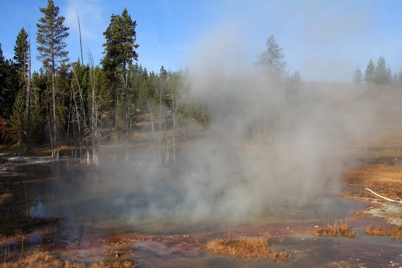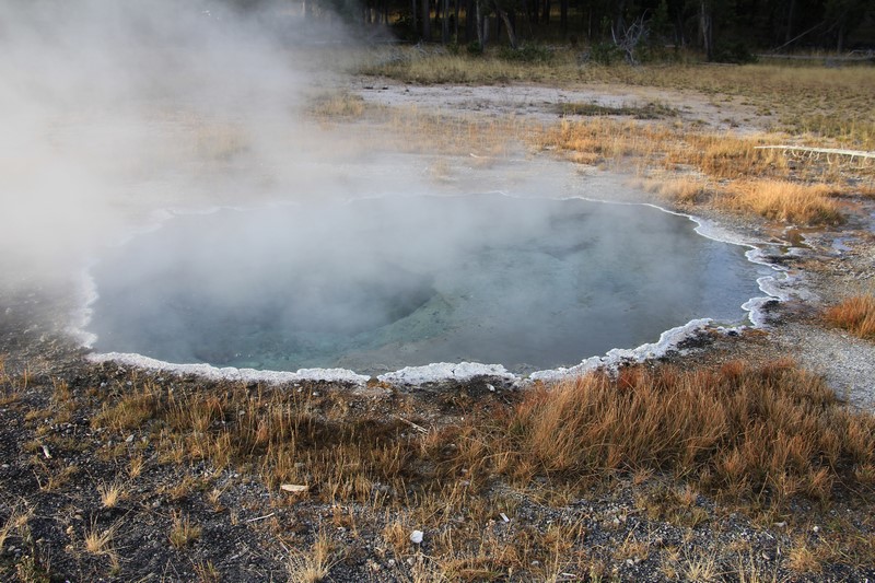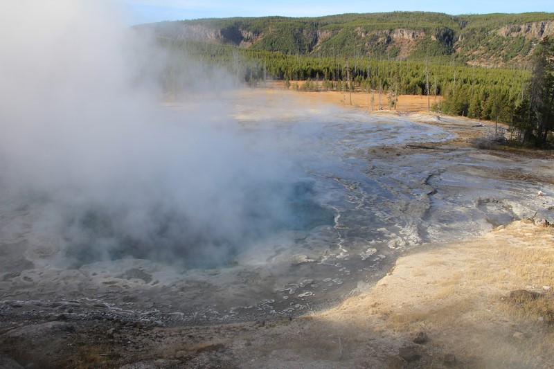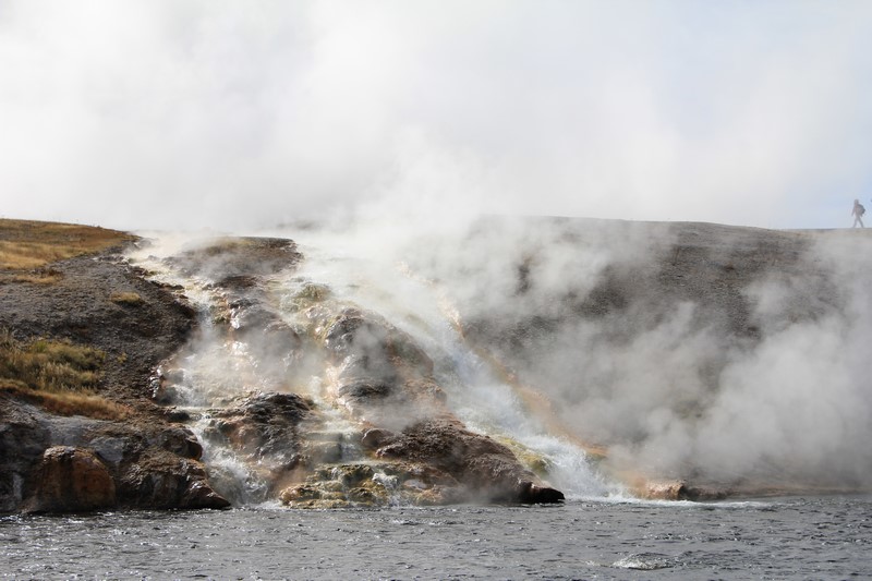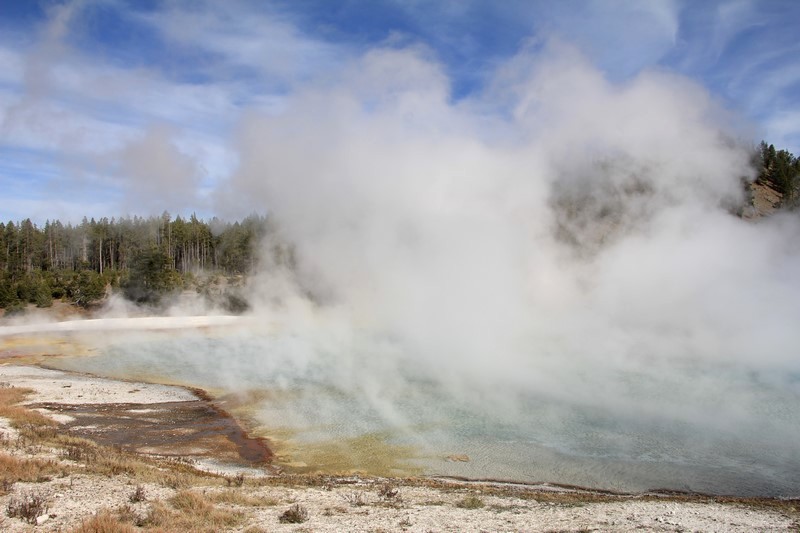 La visite du Midway Geyser Basin se fait au milieu des vapeurs. On ne voit pas grand chose.