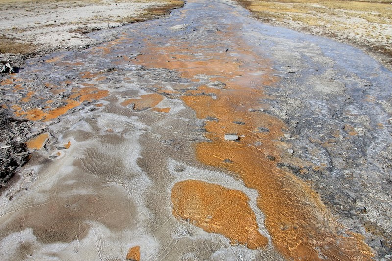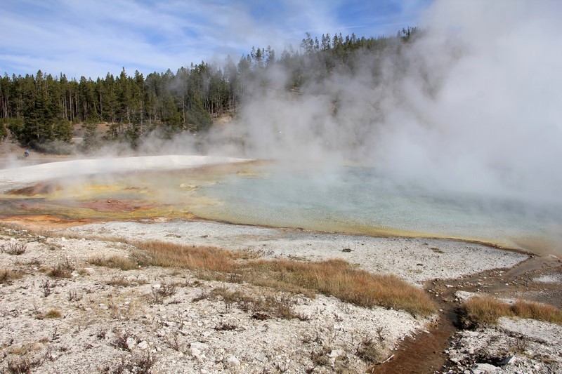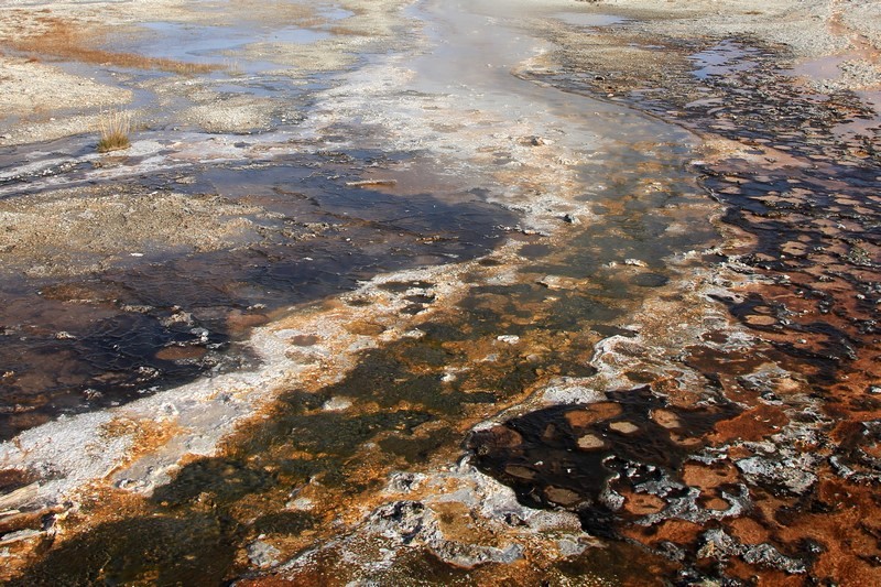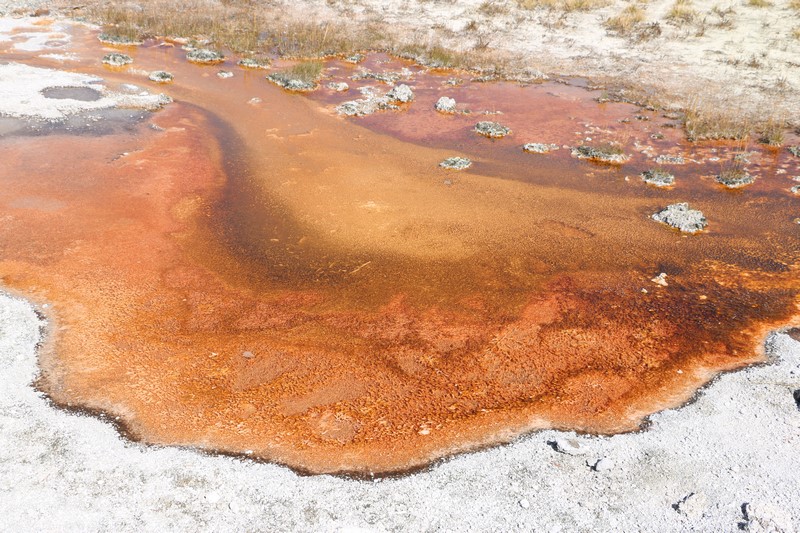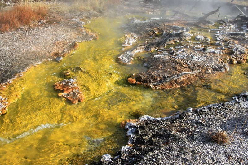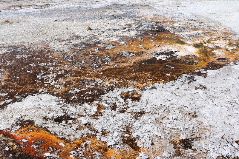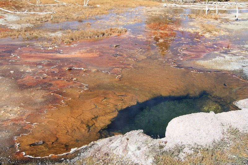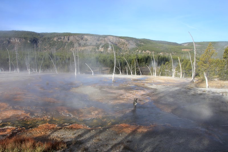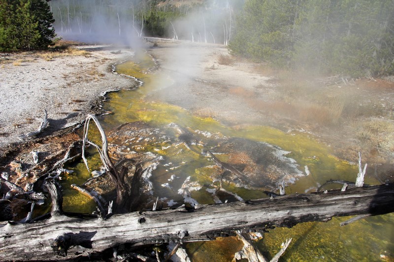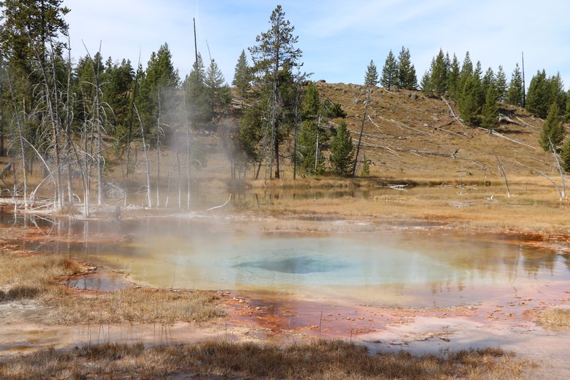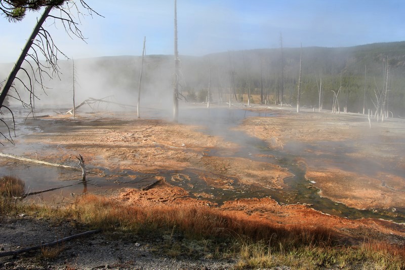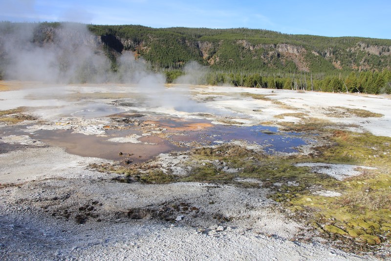 J'attends l'ouverture du Visitor Center pour en connaître les horaires pendant que Babé part explorer la zone. Et encore plus qu'à Norris Geyser Basin, les piscines et les sources chaudes sont hautes en couleurs.
