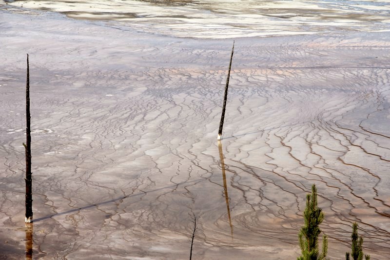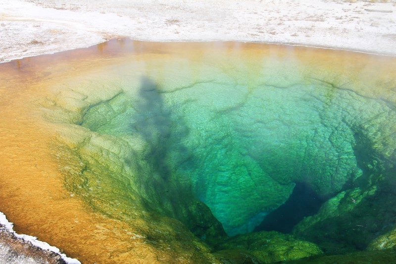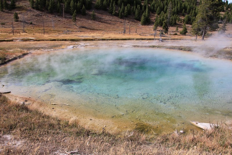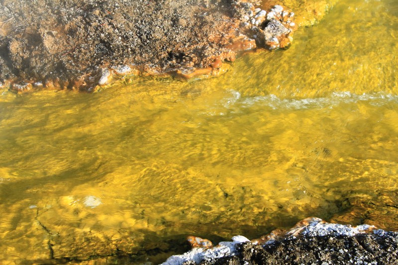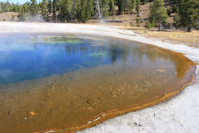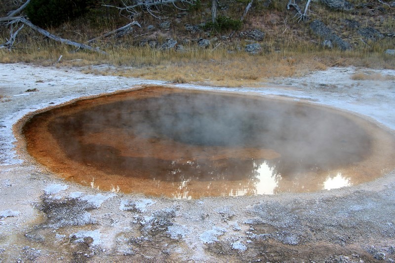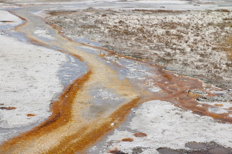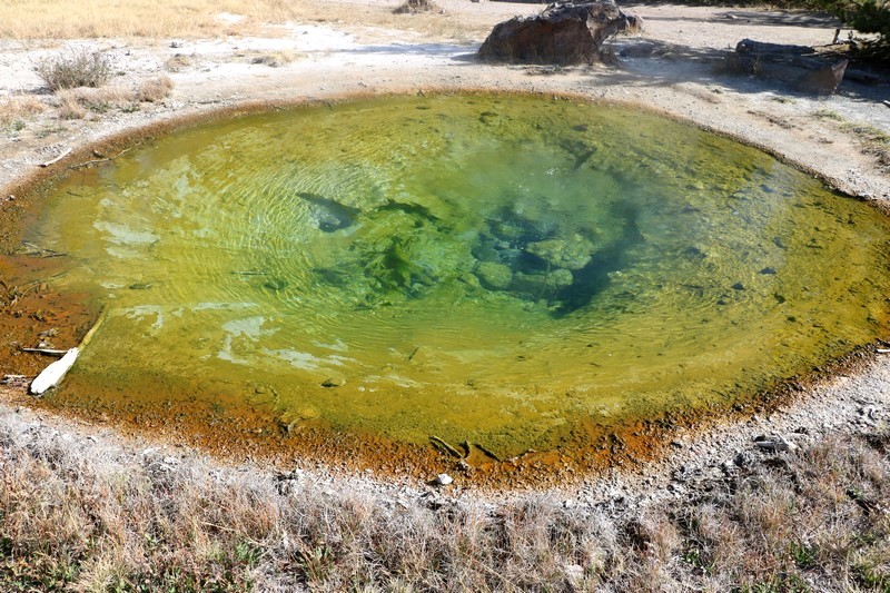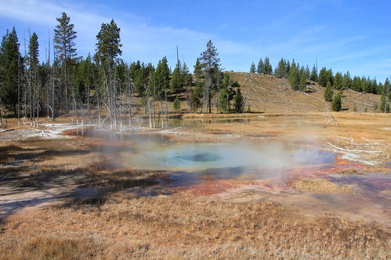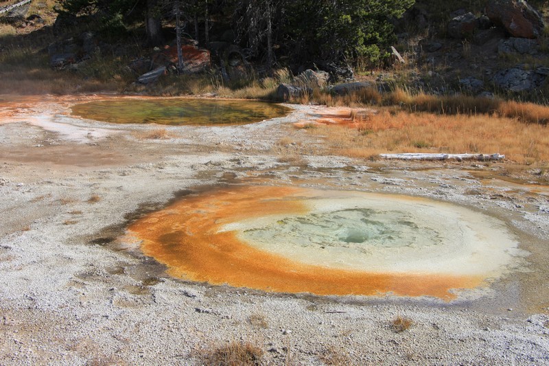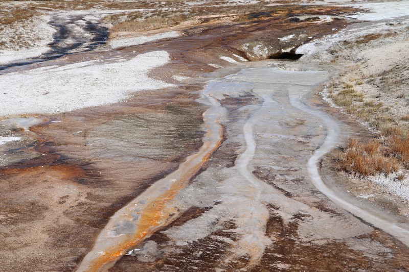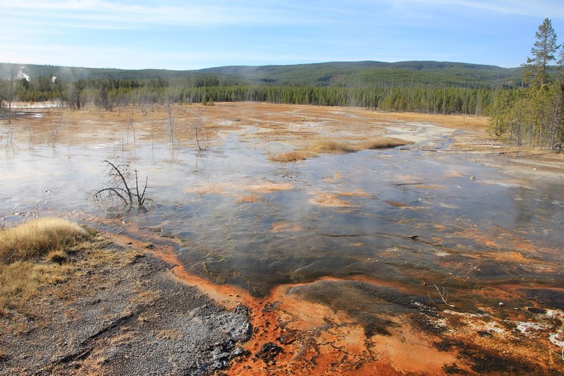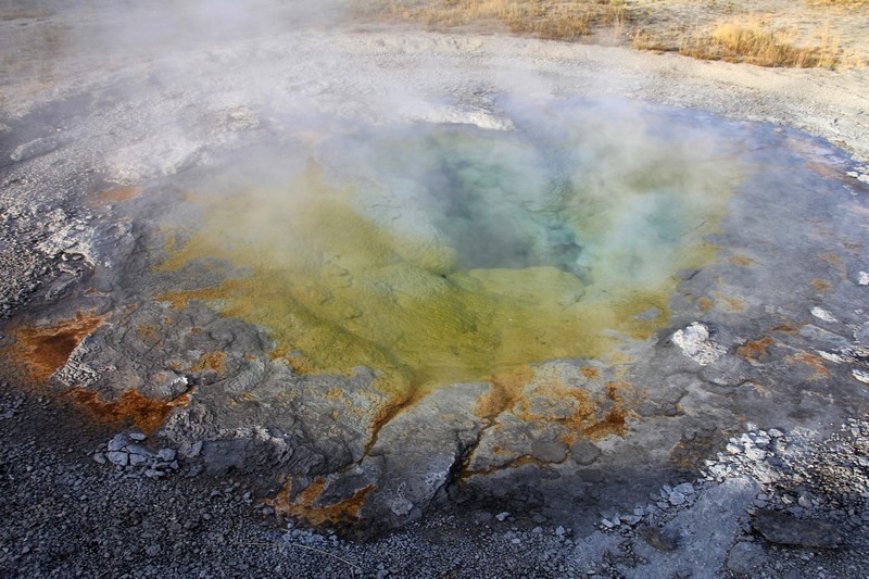 J'attends l'ouverture du Visitor Center pour en connaître les horaires pendant que Babé part explorer la zone. Et encore plus qu'à Norris Geyser Basin, les piscines et les sources chaudes sont hautes en couleurs.