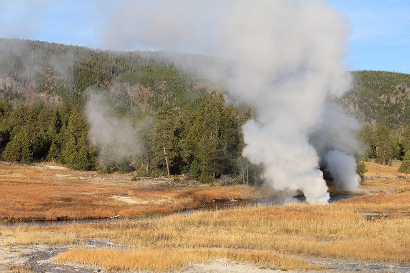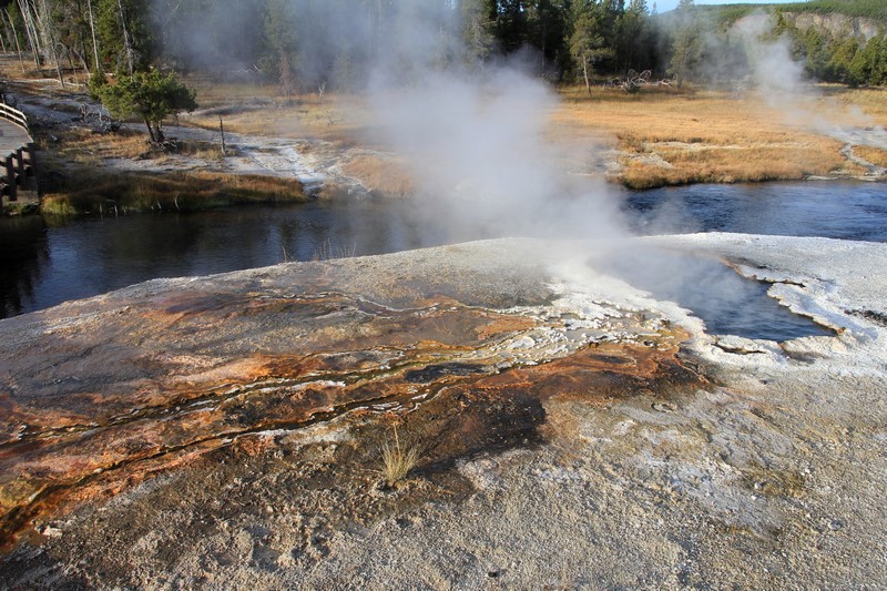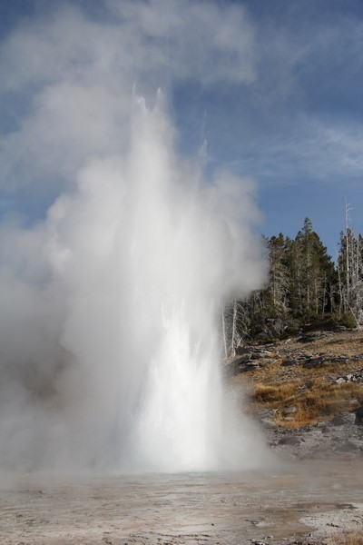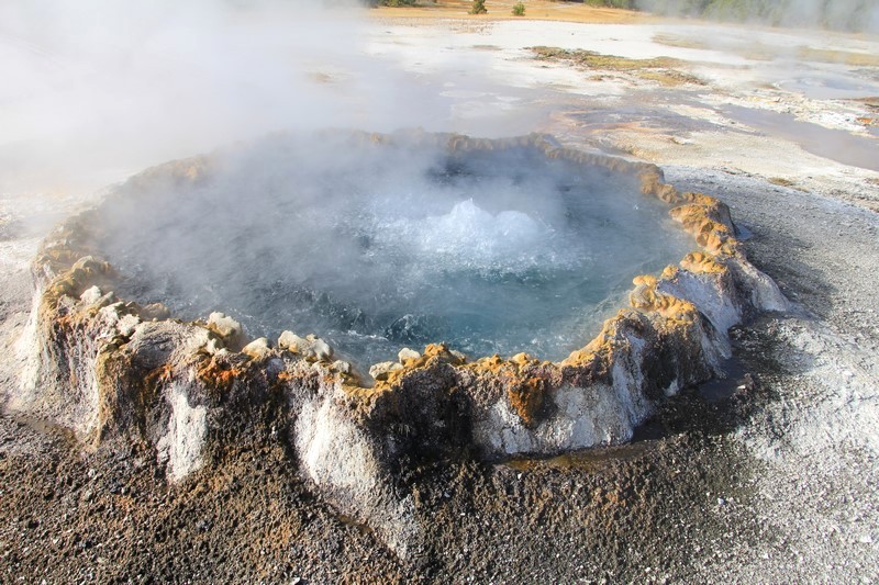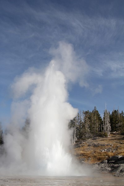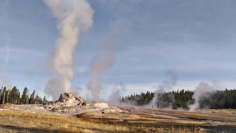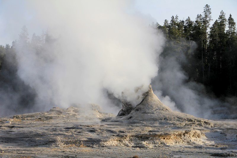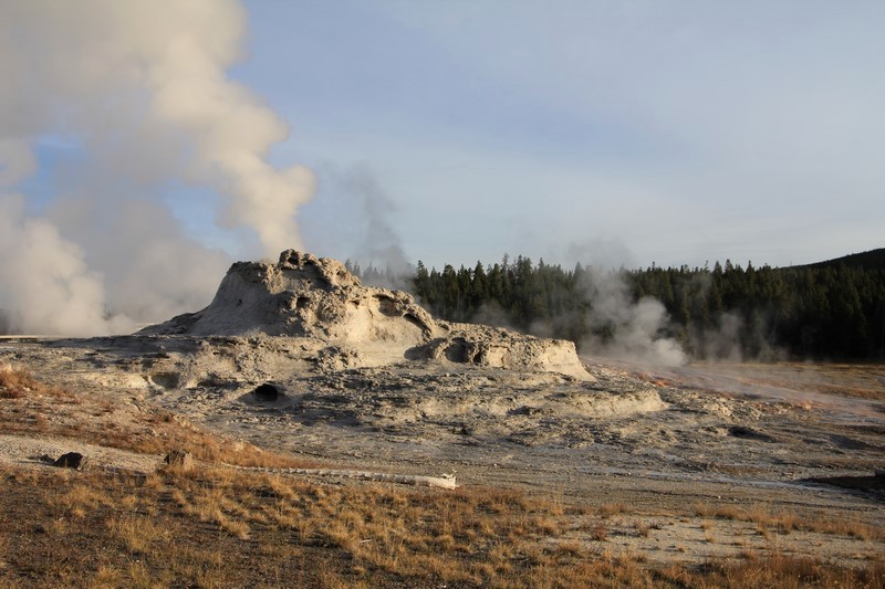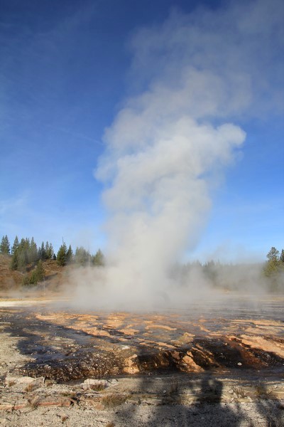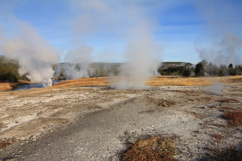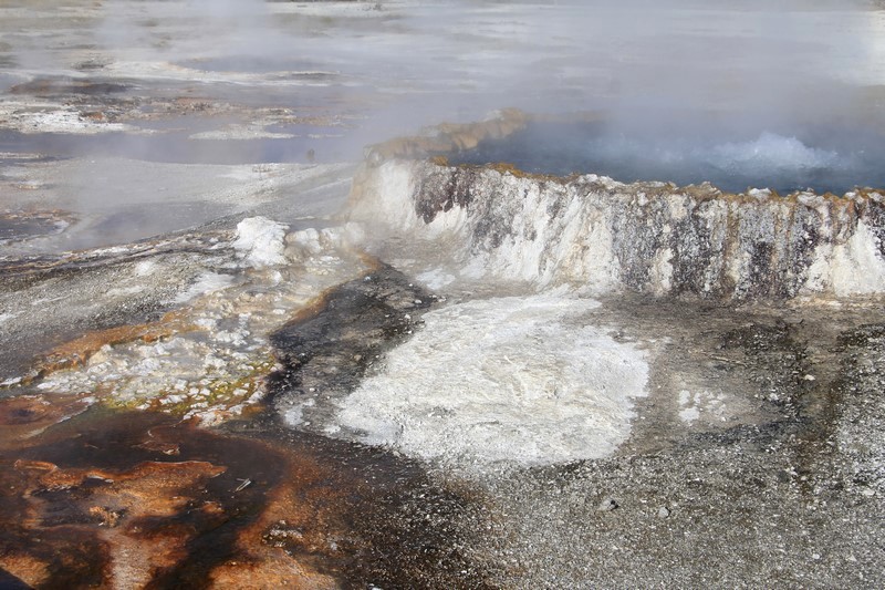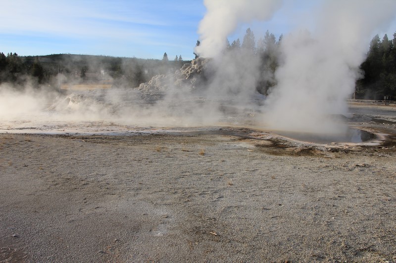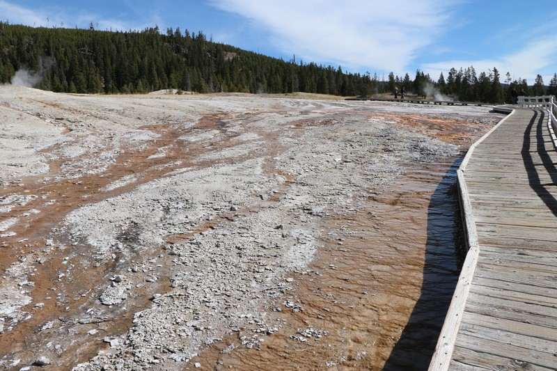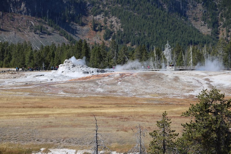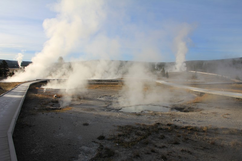 Et il n'y a pas que ce geyser-là à voir ici. Un sentier a été aménagé sur le bassin environnant. Le Castle Geyser, le Riverside Geyser, le Grand Geyser, le Daisy Geyser et encore bien d'autres peuvent entrer en éruption à tout moment. Certains sont plus prédictibles que d'autres.
