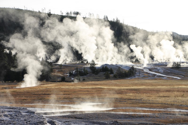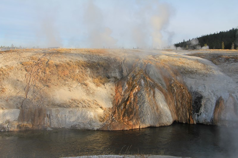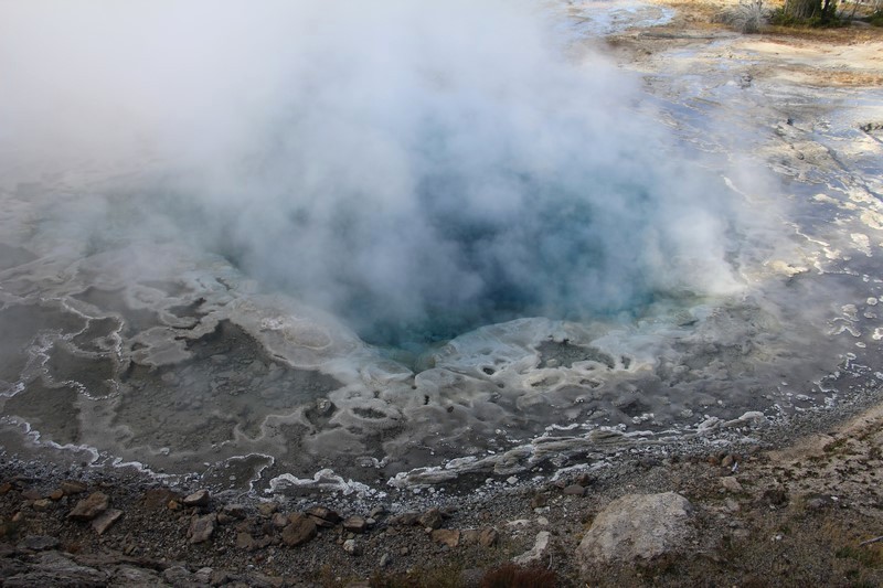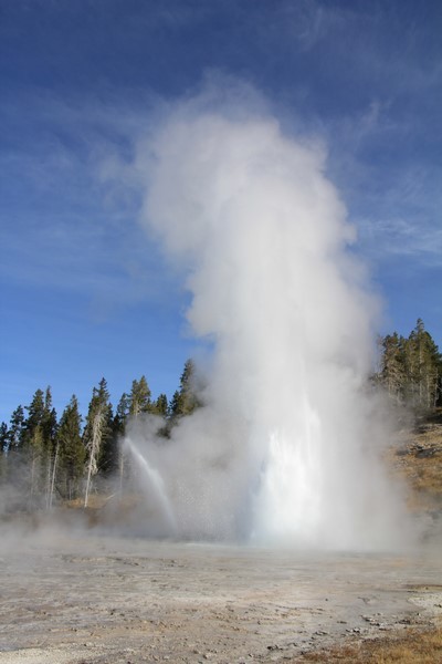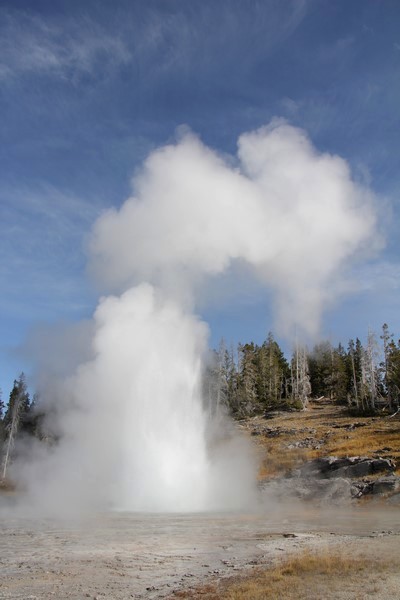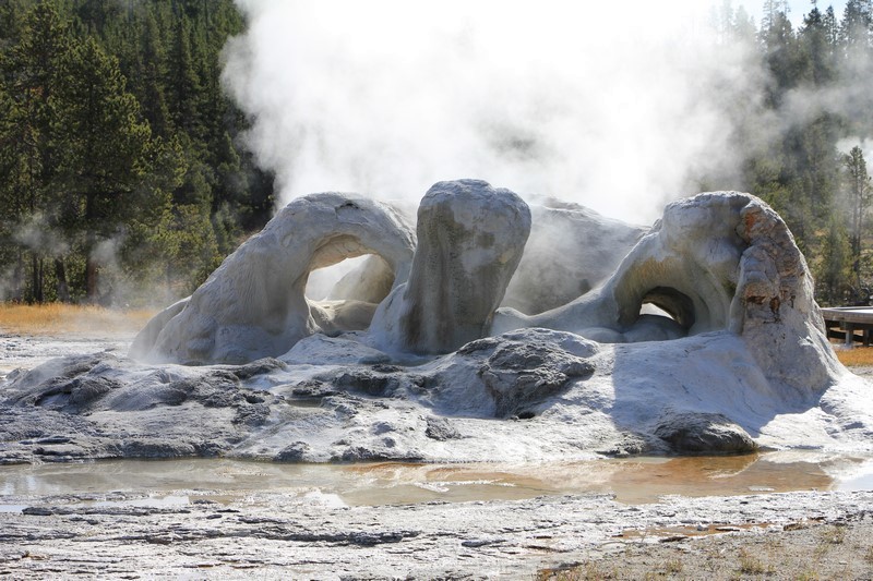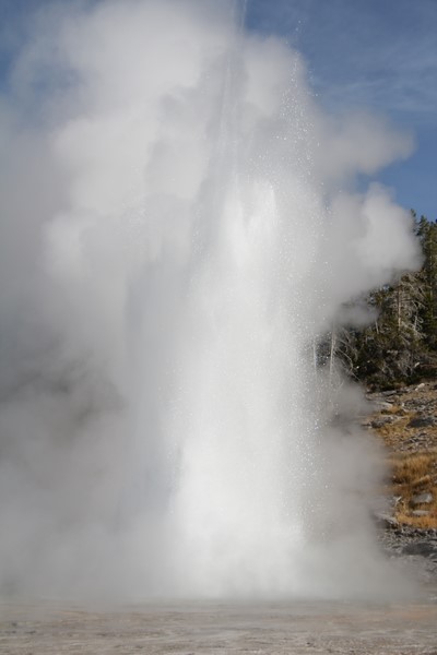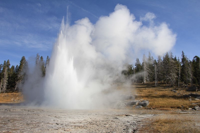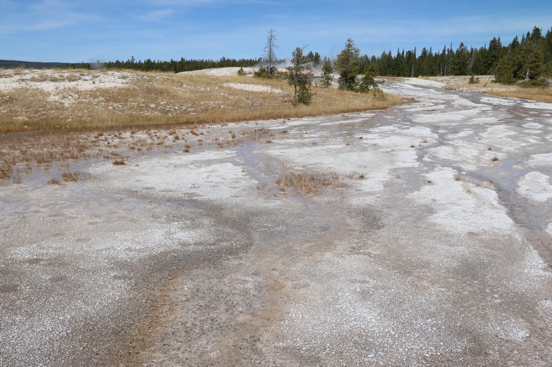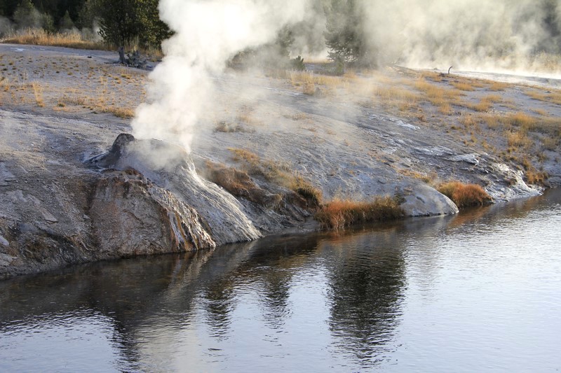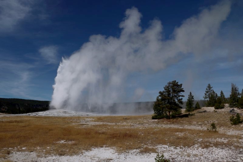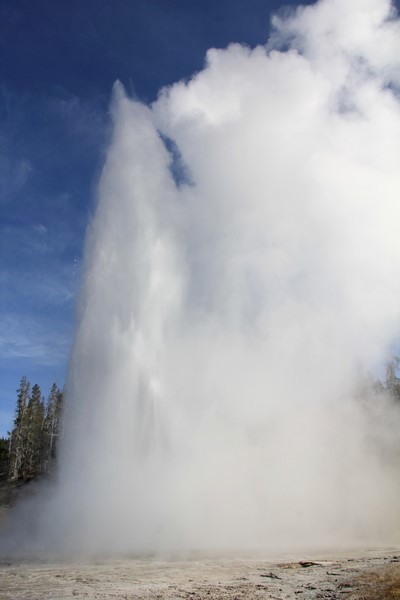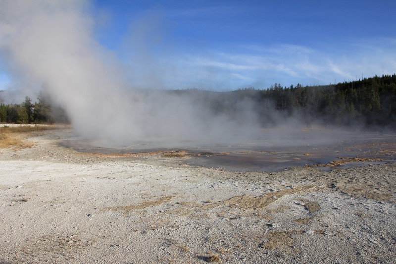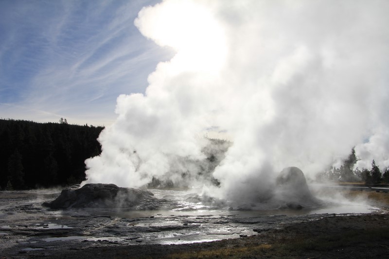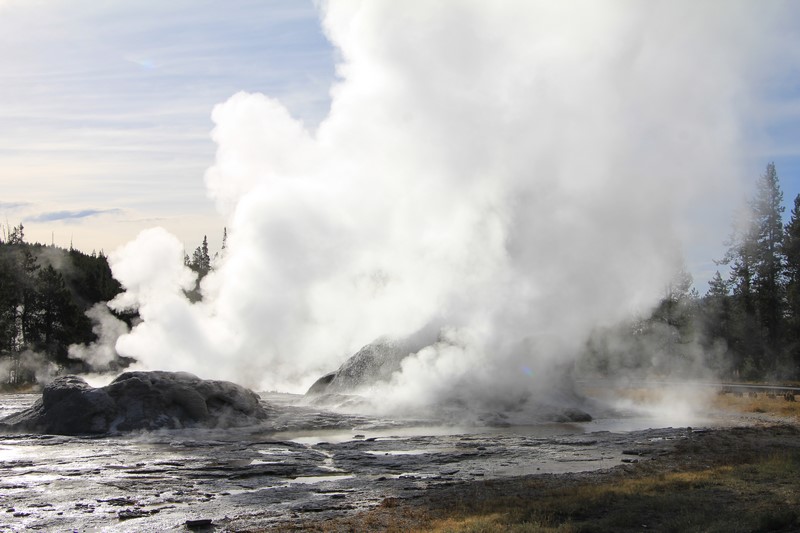 Et il n'y a pas que ce geyser-là à voir ici. Un sentier a été aménagé sur le bassin environnant. Le Castle Geyser, le Riverside Geyser, le Grand Geyser, le Daisy Geyser et encore bien d'autres peuvent entrer en éruption à tout moment. Certains sont plus prédictibles que d'autres.