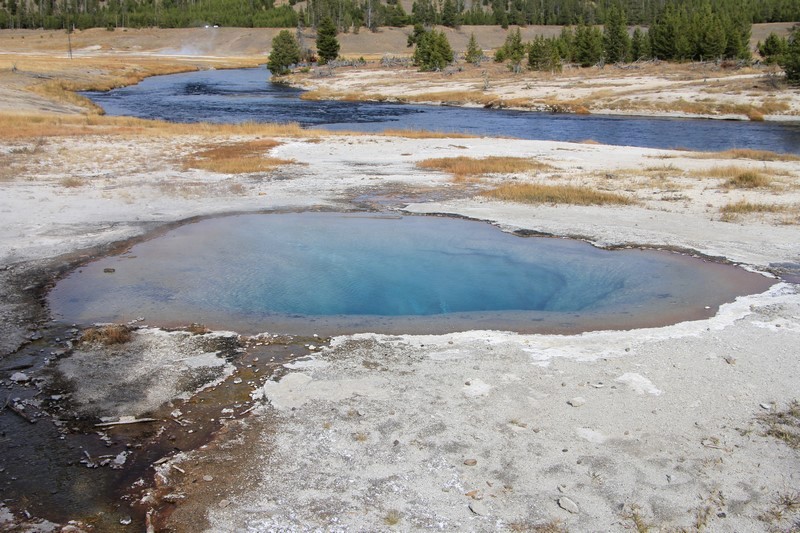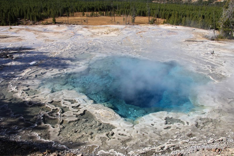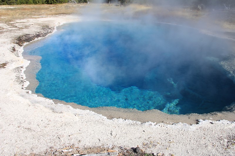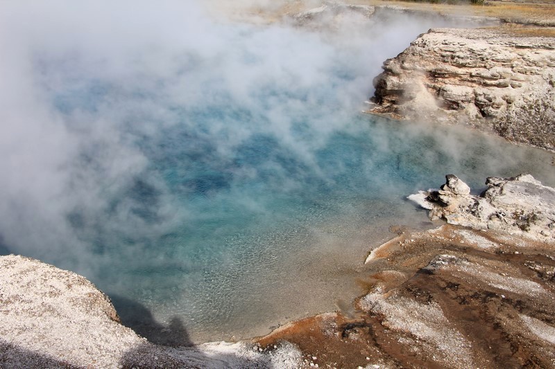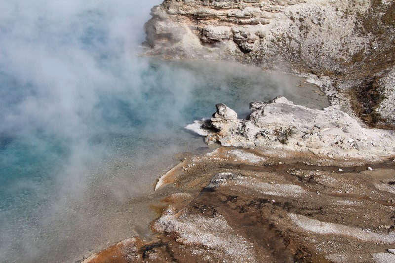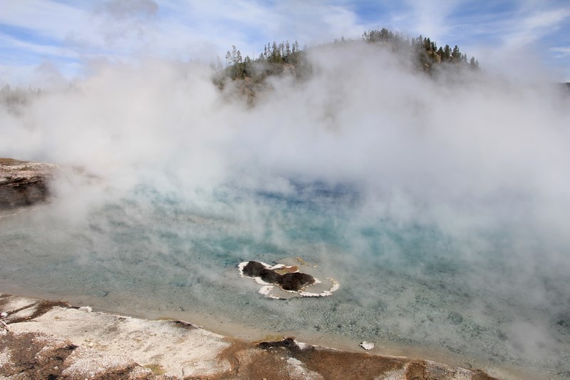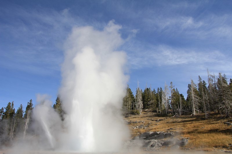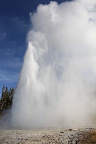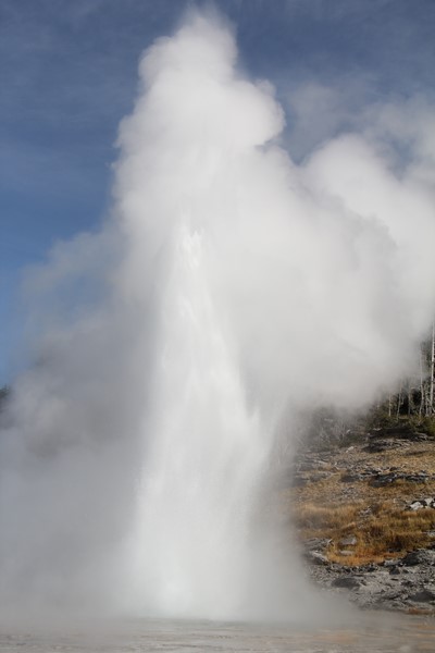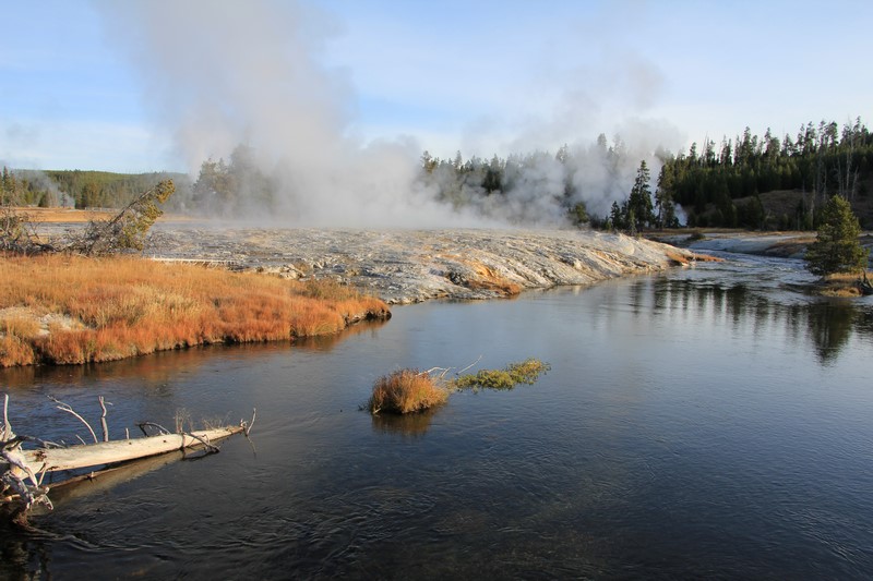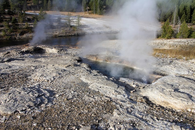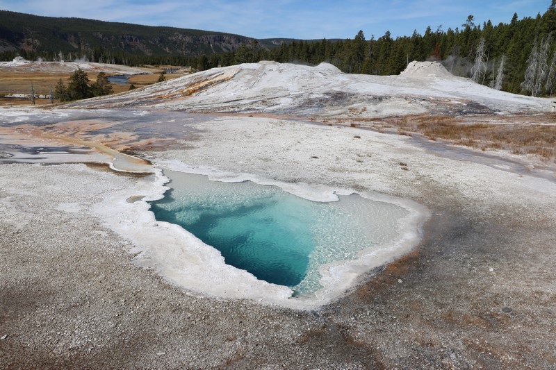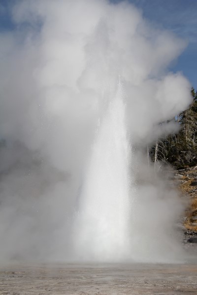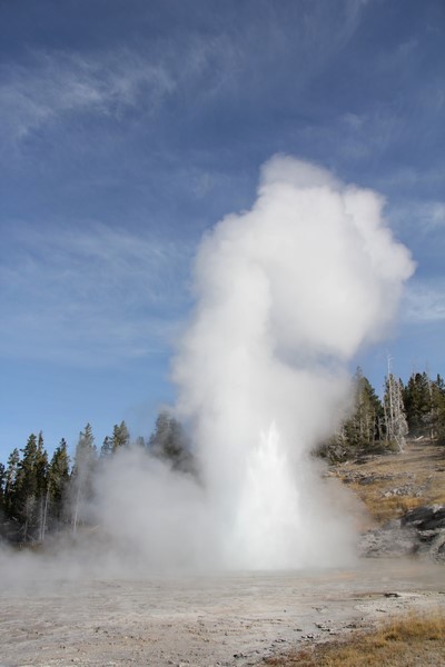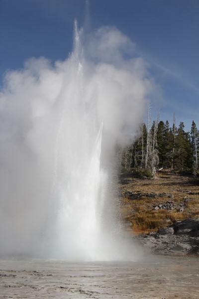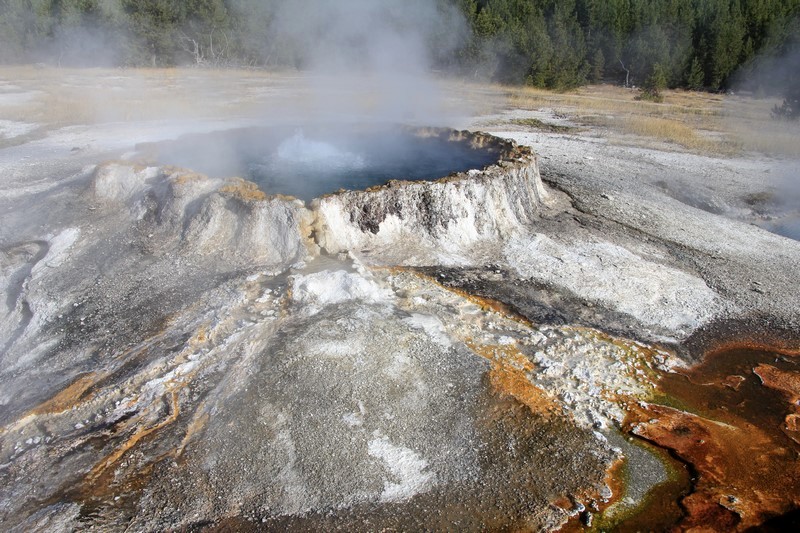 Et il n'y a pas que ce geyser-là à voir ici. Un sentier a été aménagé sur le bassin environnant. Le Castle Geyser, le Riverside Geyser, le Grand Geyser, le Daisy Geyser et encore bien d'autres peuvent entrer en éruption à tout moment. Certains sont plus prédictibles que d'autres.