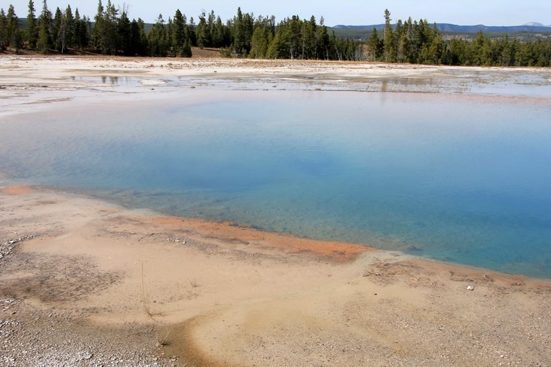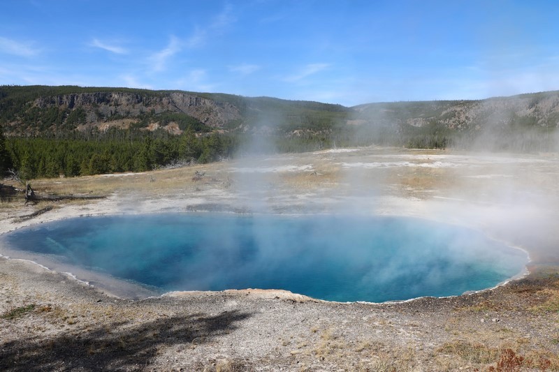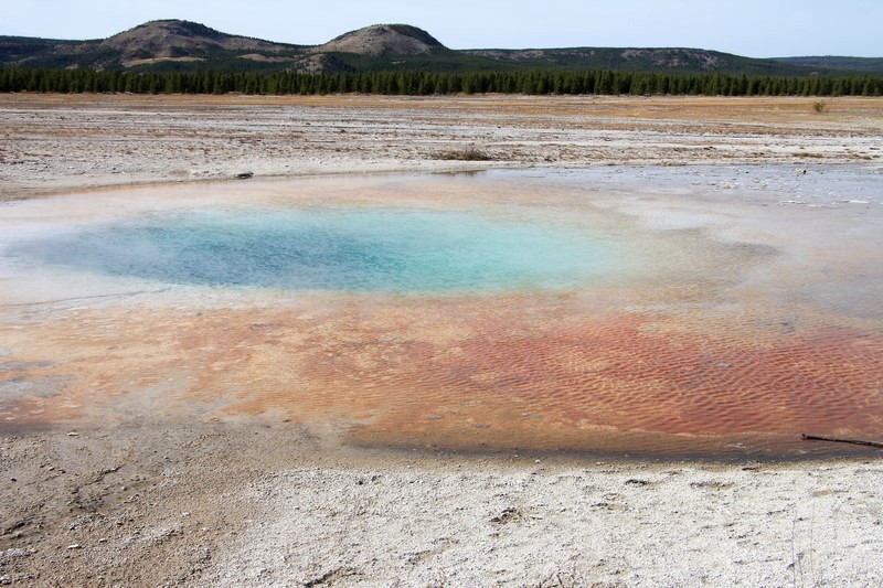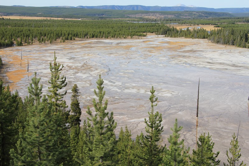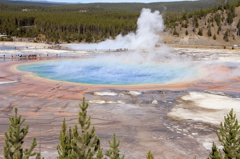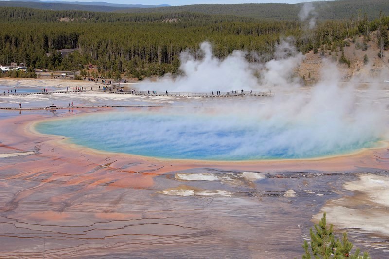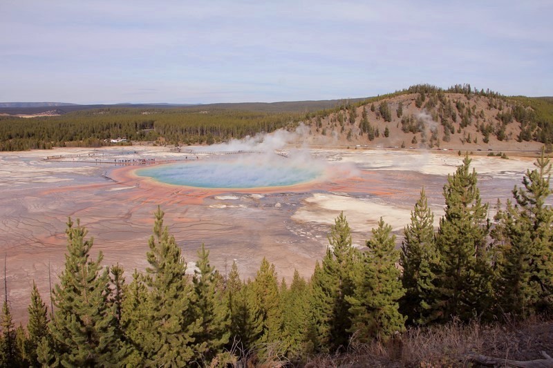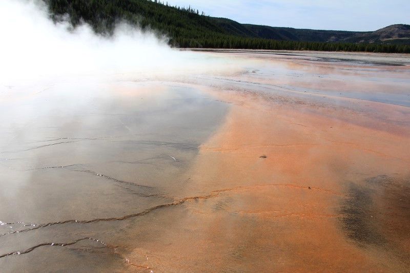 On rebrousse chemin pour s'arrêter voir la Grand Pismatic Spring au niveau du Midway Geyser Basin.