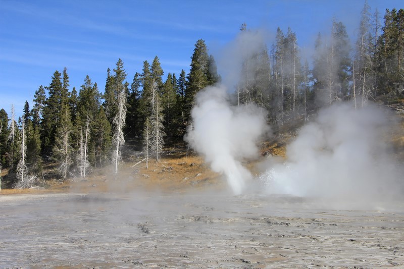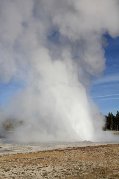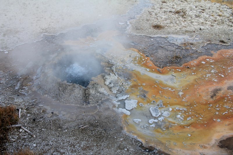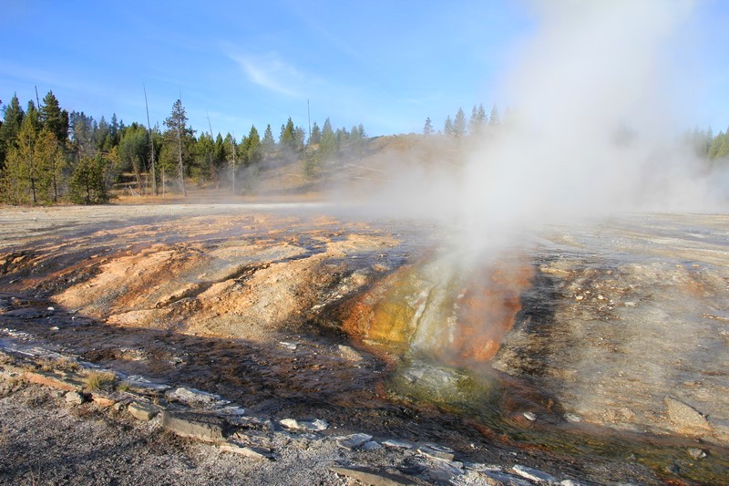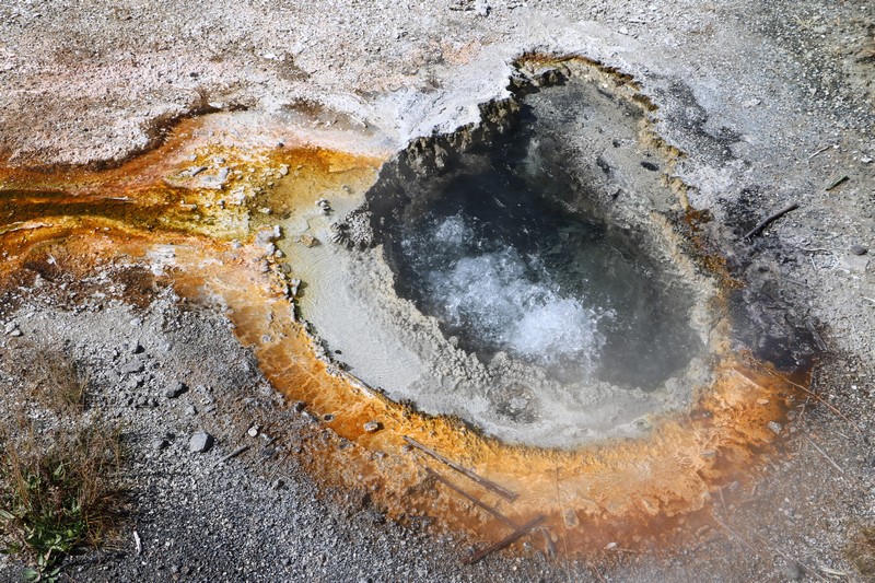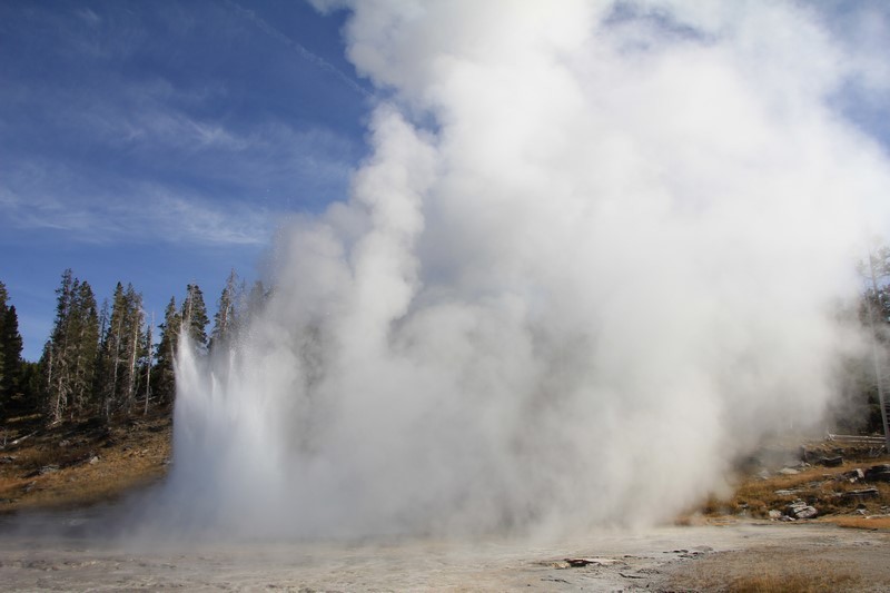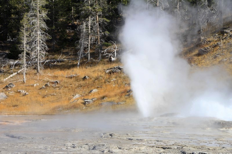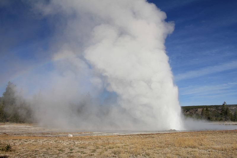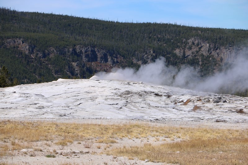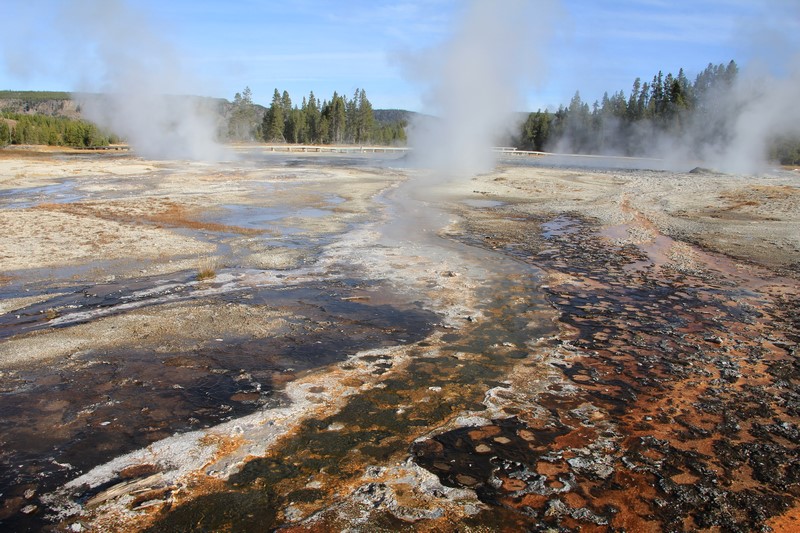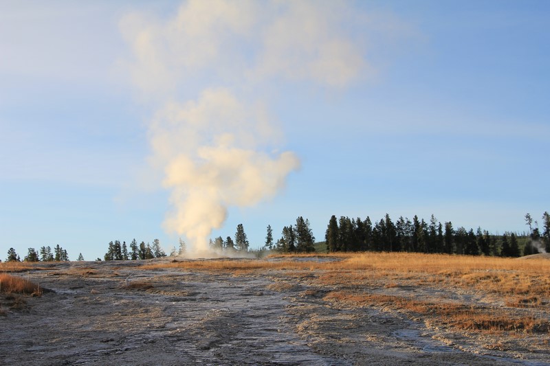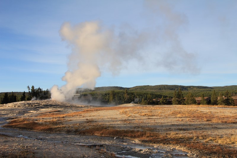Je termine mon tour (la petite boucle du basin) plein de couleurs, bulles et fumerolles, en voyant une nouvelle éruption du Old Faithful d'un peu plus loin.