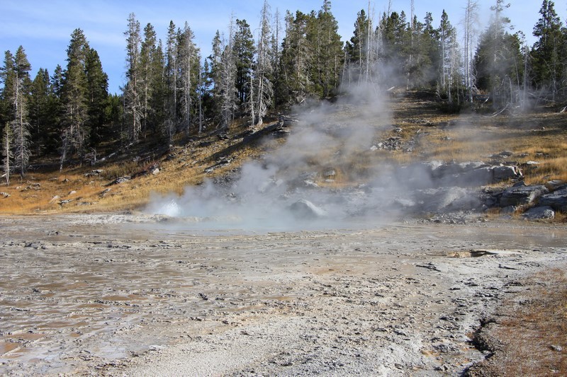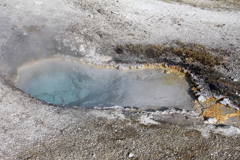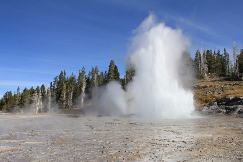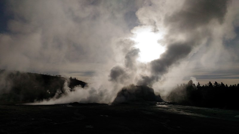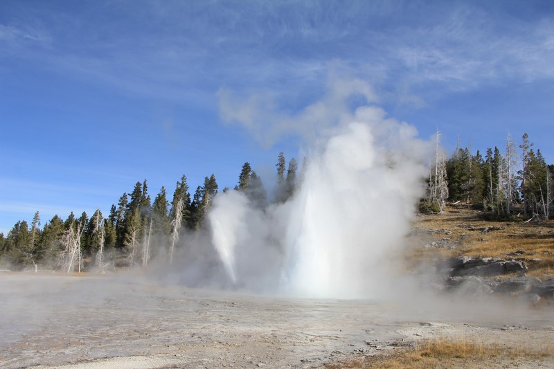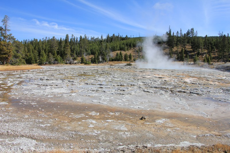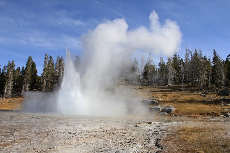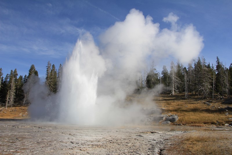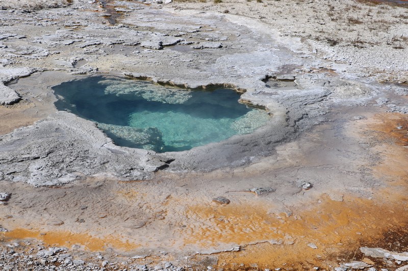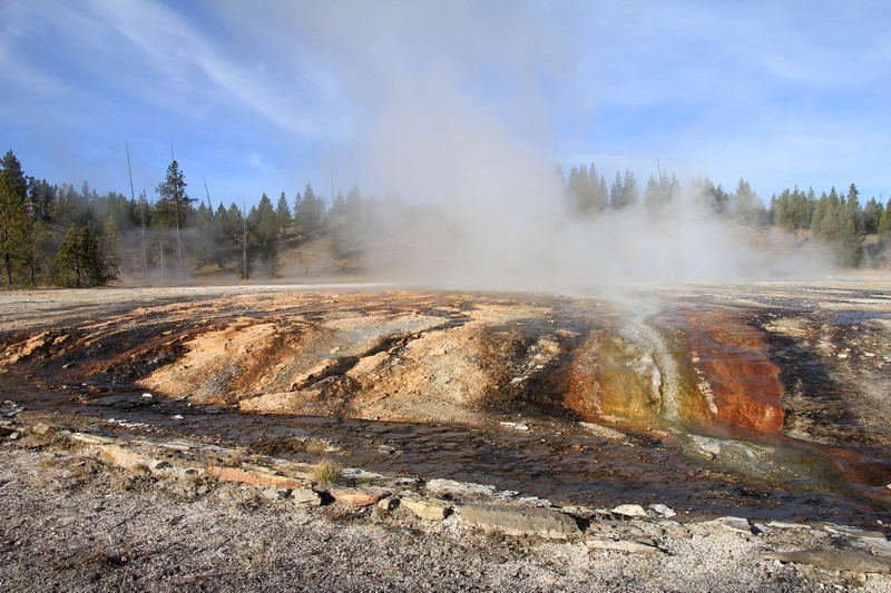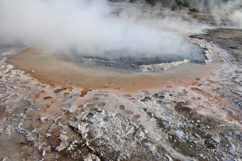 Je termine mon tour (la petite boucle du basin) plein de couleurs, bulles et fumerolles, en voyant une nouvelle éruption du Old Faithful d'un peu plus loin.