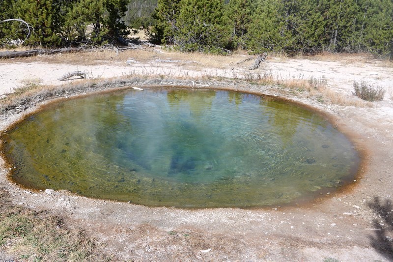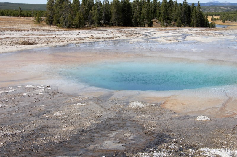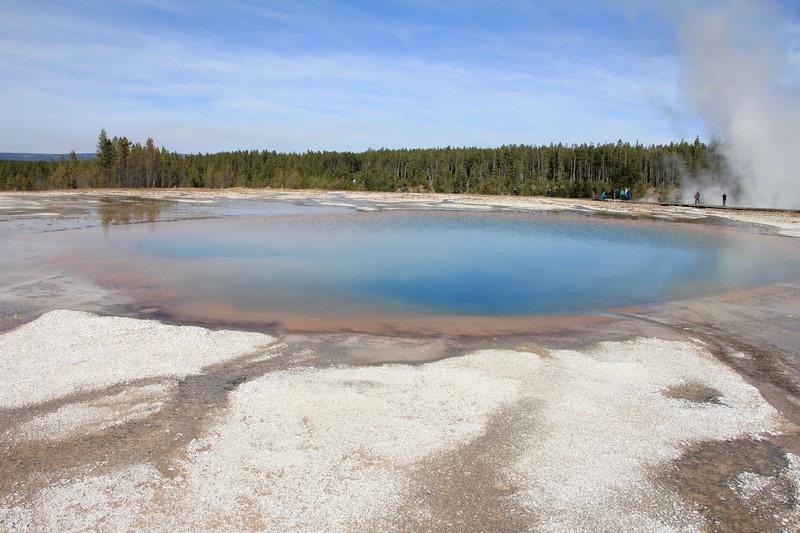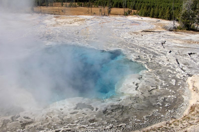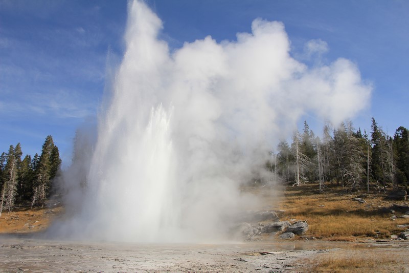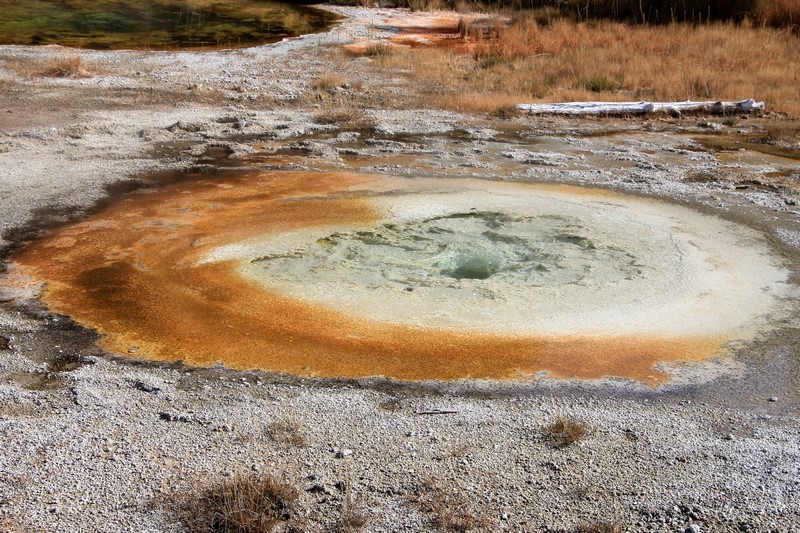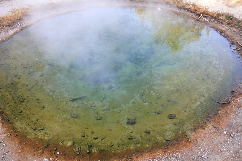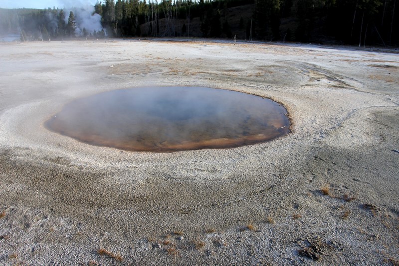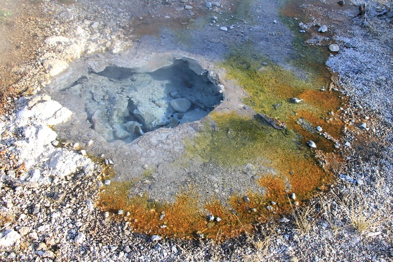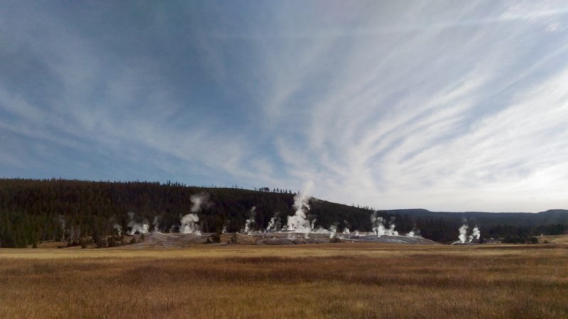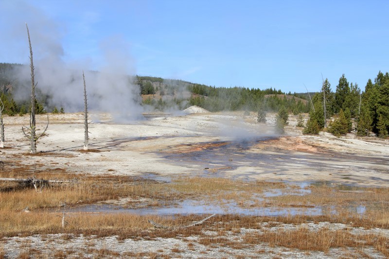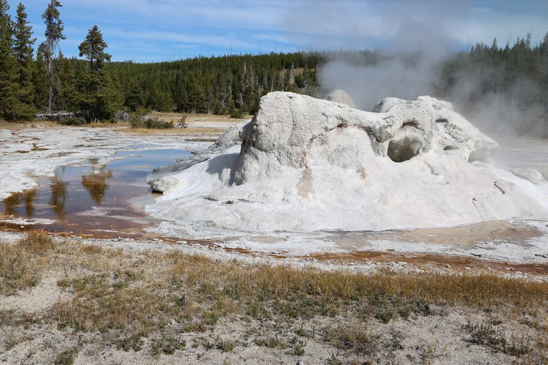 Je termine mon tour (la petite boucle du basin) plein de couleurs, bulles et fumerolles, en voyant une nouvelle éruption du Old Faithful d'un peu plus loin.