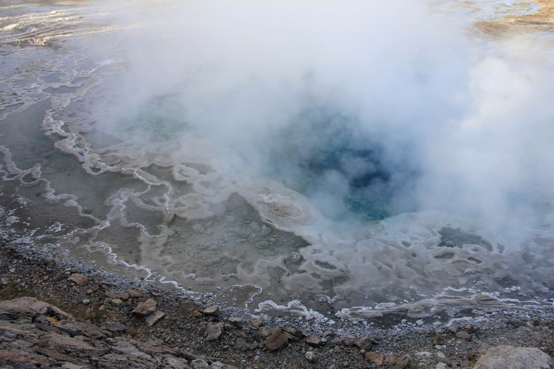Le Grand Geyser est massif, bruyant et déverse ses trombes de vapeurs pendant plus d'une demie heure.