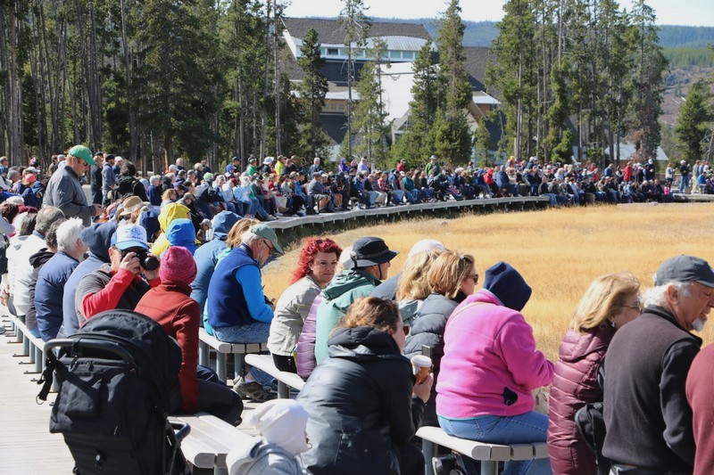 Il assiste lui-aussi à une autre éruption du Old Faithful, en présence de bien plus de touristes cette fois-ci.