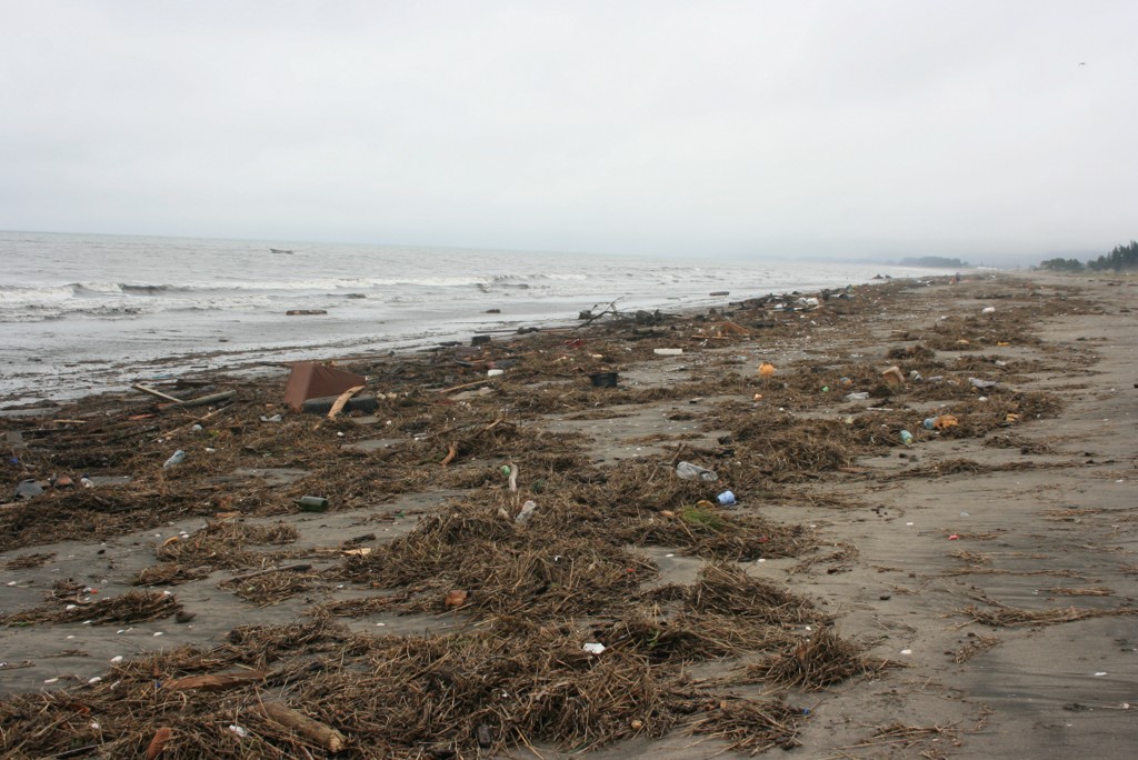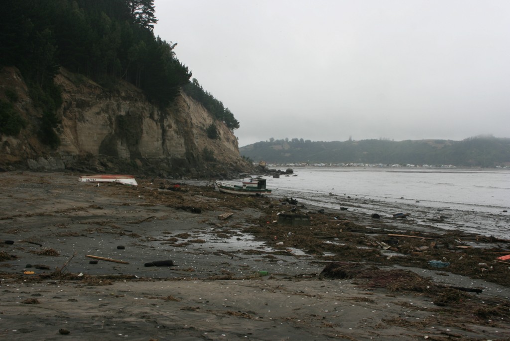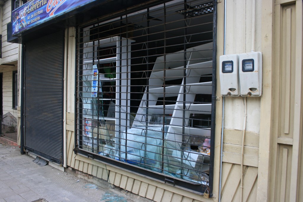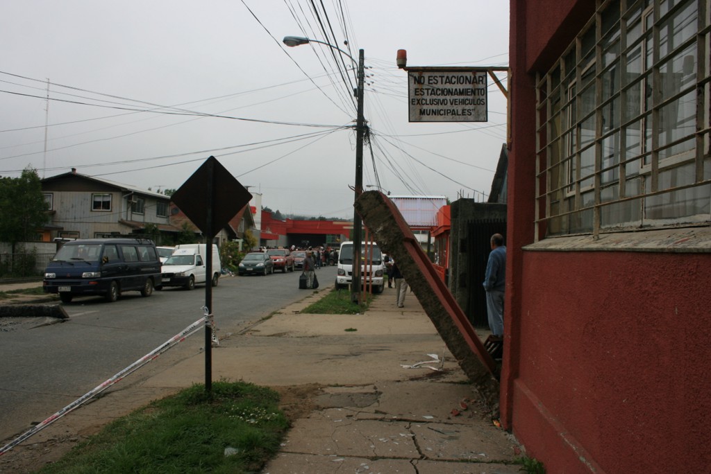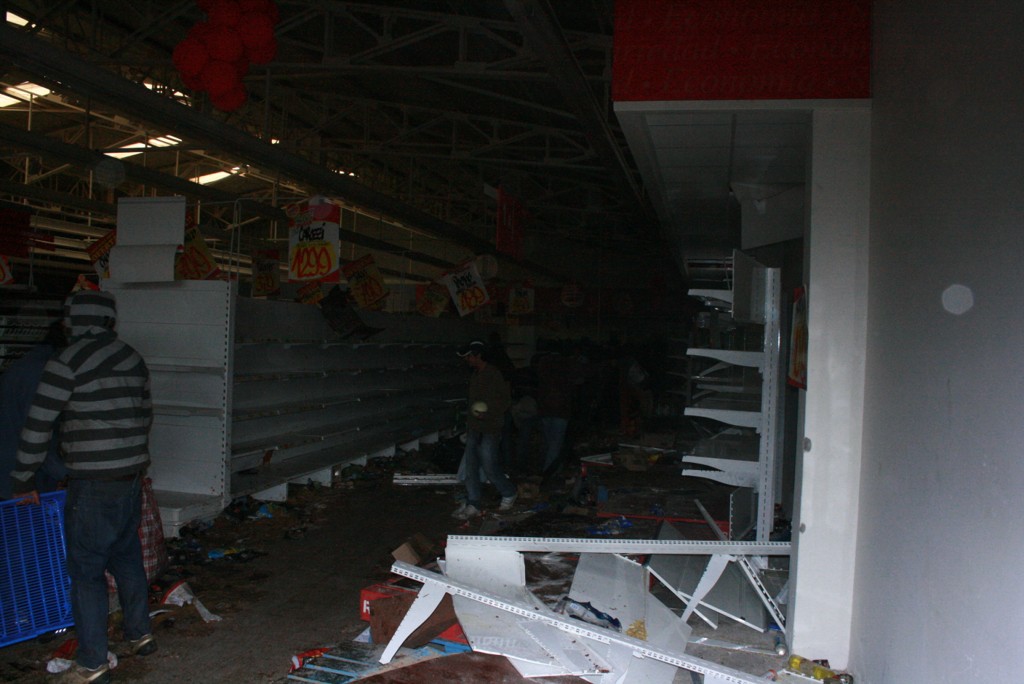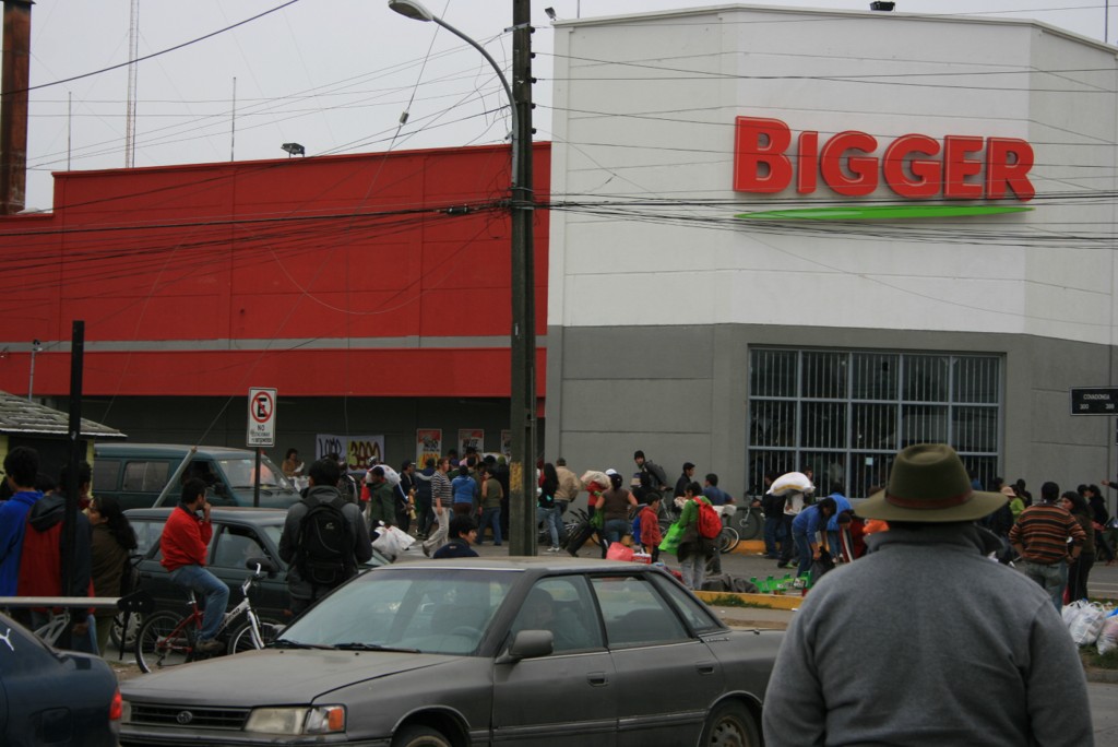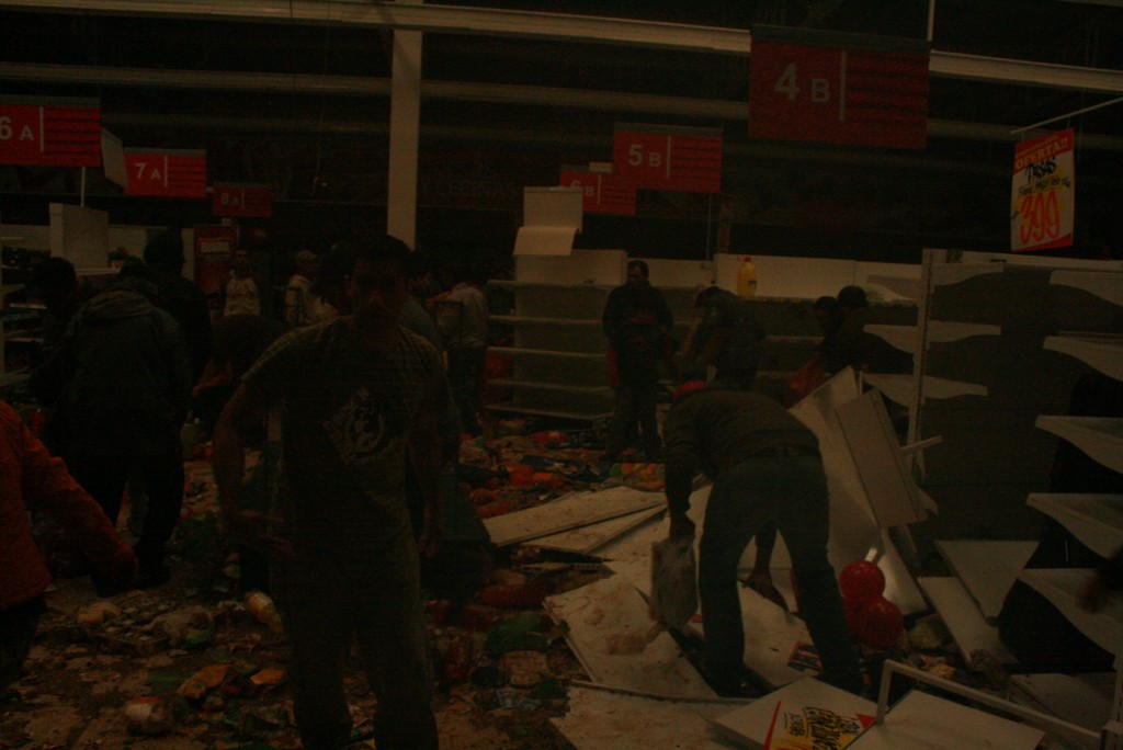 Une fois en ville, on peut oublier les secours… Comme le bas de la ville donne directement sur l’océan, c’est un peu chacun pour soi. Les gens qui ont des pickups les chargent au maximum et se rendent sur les hauteurs ou tentent tout simplement de quitter la ville. Pour ceux qui restent, c’est la recherche d’eau et de nourriture qui prime. Heureusement, il y a un entrepôt de farine et les autorités ont organisé une distribution qui se passe plutôt bien. Pour l’eau même topo, de gros camions citerne ont été réquisitionnés, ils ont puisé directement dans les réservoirs de la ville et distribue maintenant le précieux liquide. Pour le reste, l’abandon de la surveillance du supermarché par les carabineros va faire la joie des locaux. Après quelques tentatives infructueuses pour ouvrir les portes, un gros 4x4 transformé en bélier permet à la foule de se déverser dans les rayons. Encore une fois, c’est chacun pour soi et il ne faudra pas longtemps pour vider le magasin. C’est dommage que les gens ne se soient pas organisés pour tout distribuer calmement car dans la précipitation, des kilos de nourriture ont été gâchés. Le principal est que ça soit passé dans une bonne ambiance.