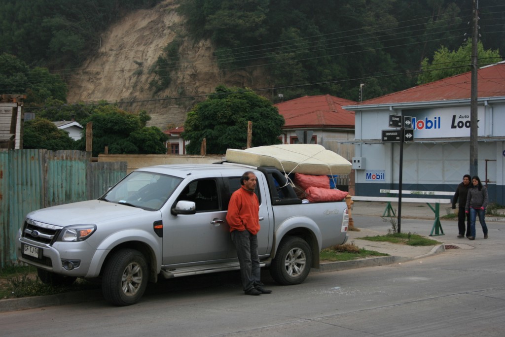 Très mal dormi pour Coucoux car il y a de nombreuses répliques. Babé, lui ronfle comme d’habitude. Le matin, il se rend à pieds à Arauco à 20km de là. C’est la grosse ville du coin et on espère bien dénicher des secours. Après avoir passé les nombreux éboulements sur la route, il arrive à faire du stop sur les derniers kilomètres.