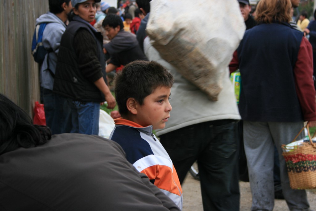 Beaucoup de gens passent sur la route, venant de Arauco et se rendant dans les villages.