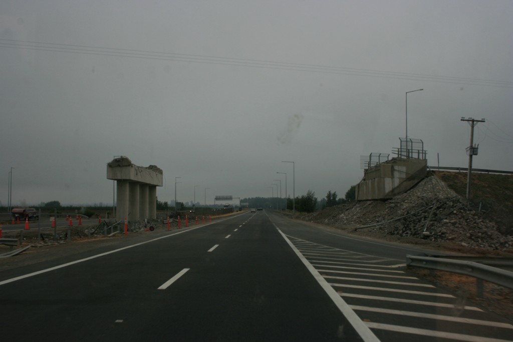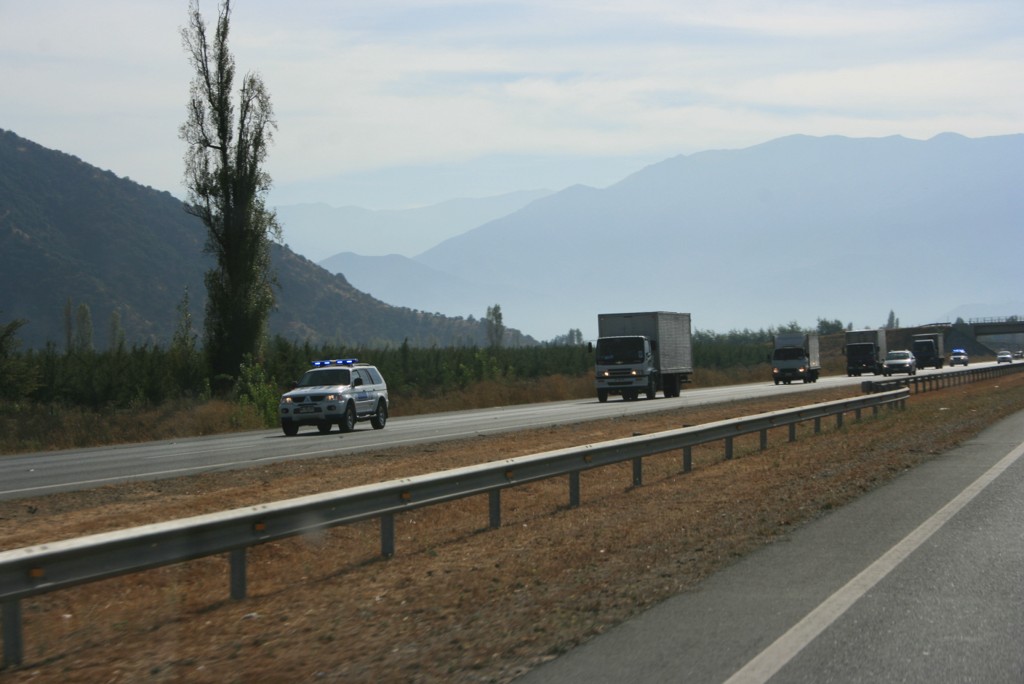 On prend la route tôt et les déviations nous amènent directement dans le centre de Santiago. On se rend donc à l'ambassade de France pour prévenir les familles et avoir des infos sur l'état des routes. On a de la chance de trouver du monde à l'ambassade car, normalement, elle n'est ouverte qu'en semaine de 9h à 12h. Heureusement, aujourd'hui ils reçoivent du matériel pour l'envoyer à Concepcion. Du coup, ils acceptent de nous laisser rentrer pour passer quelques coups de fil. Pas trop longtemps quand même, car il est plus de midi et le restaurant les appelle. LOL! Au bout d'une heure ils nous font gentiment comprendre qu'il faut partir. On aurait dû faire croire qu'on avait subi un gros choc psychologique pour avoir un meilleur accueil.