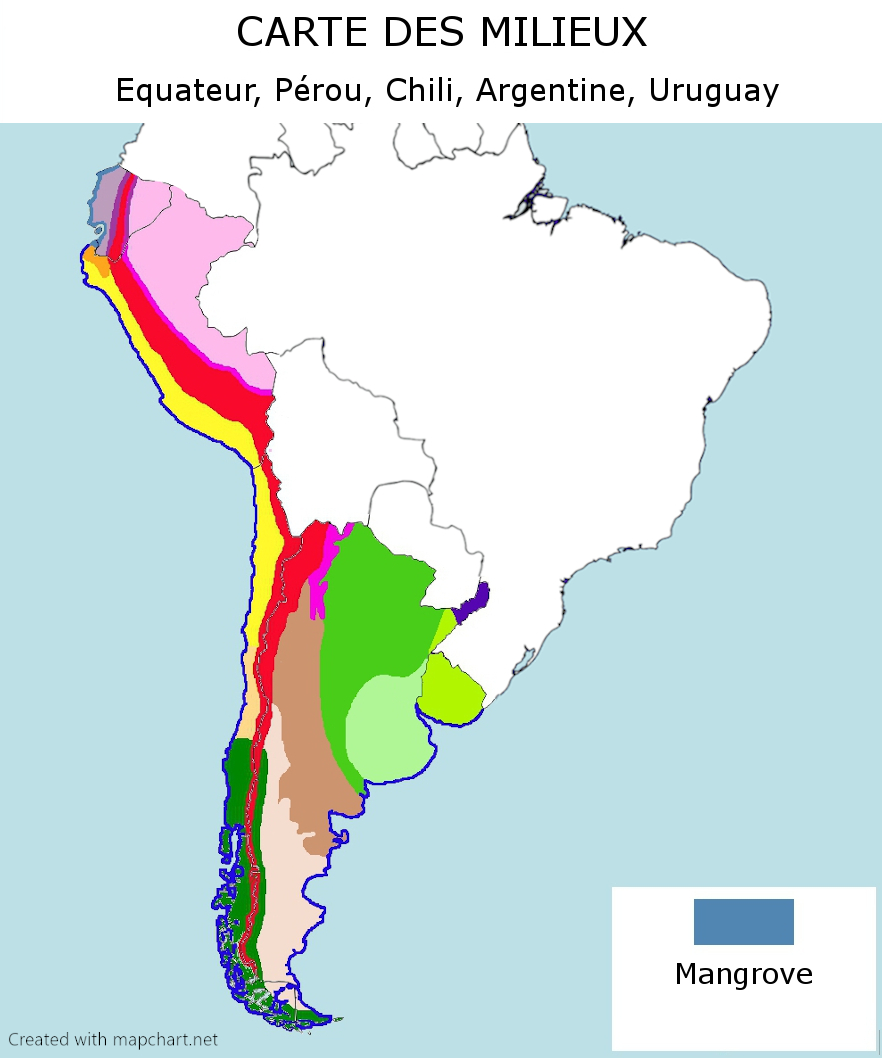 La carte "Carte des milieux - Mangrove" a été réalisé par Lise Coulaud-Dutheil à l'aide d'un fond de carte provenant du site https://mapchart.net/ en conformité avec la license d'utilisation de ce site et de la license Creative Commons Attribution-ShareAlike 4.0 International License (version française de cette license ici : https://creativecommons.org/licenses/by-sa/4.0/deed.fr) à laquel elle est soumise.