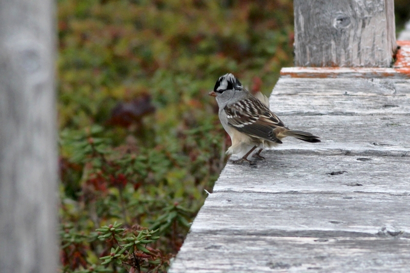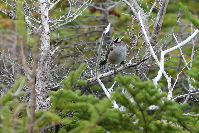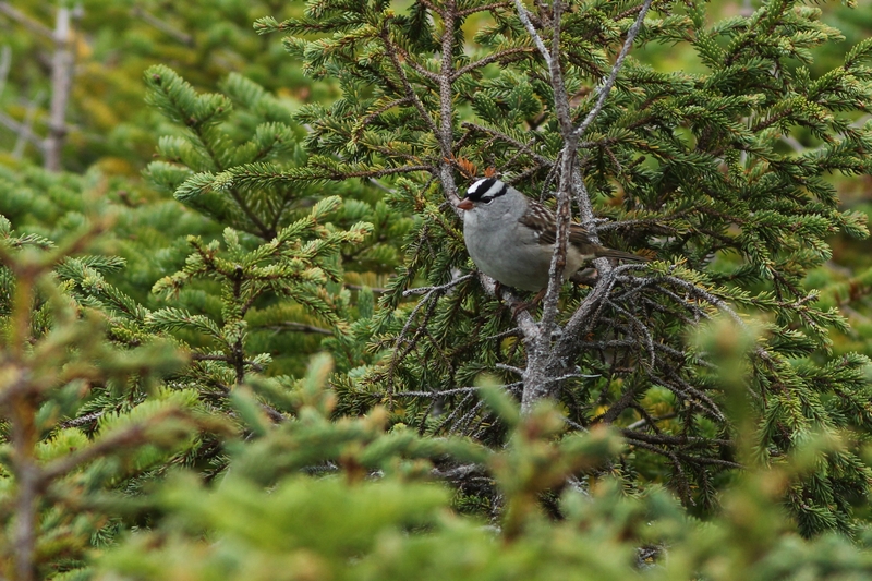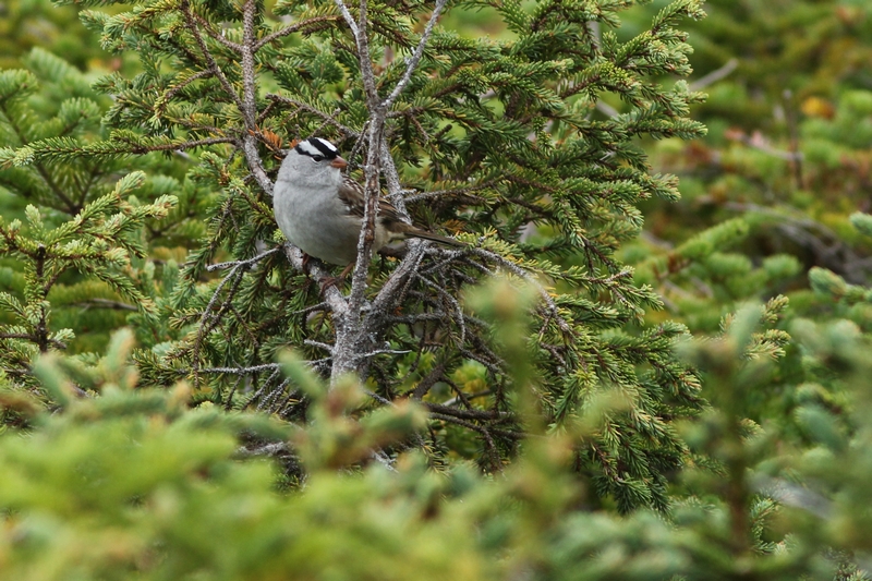 White-Crowned Sparrow 18 cm Zonotrichia leucophrys Bruant à couronne blanche Chingolo Coroniblanco Spots Obs : Monts Uapishka Période : Commentaire : A venir...