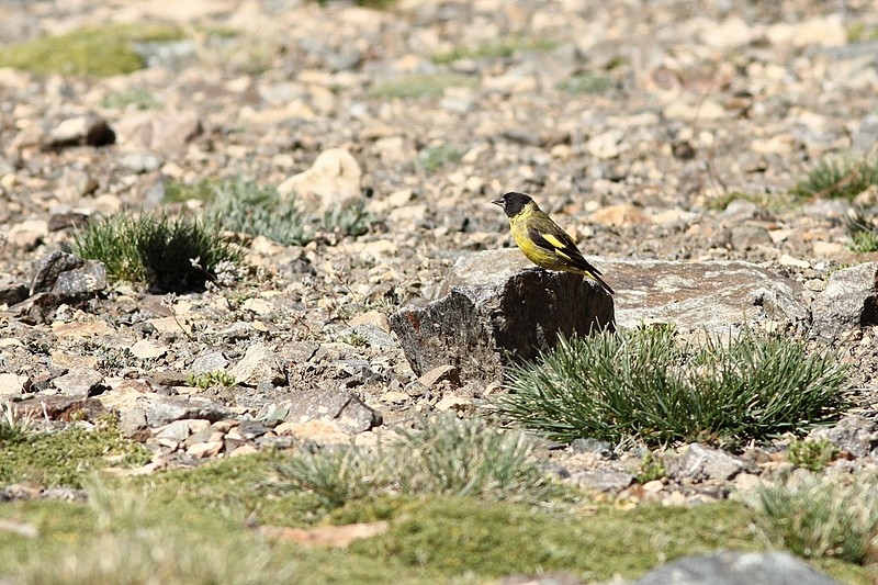 Thick-Billed Siskin 12 cm Carduelis crassirostris Chardonneret à bec épais Cabecitanegra Picudo Spots Obs : Nord des Andes Période : Commentaire : Mâle Femelle