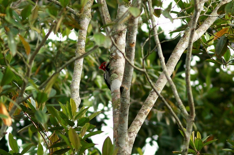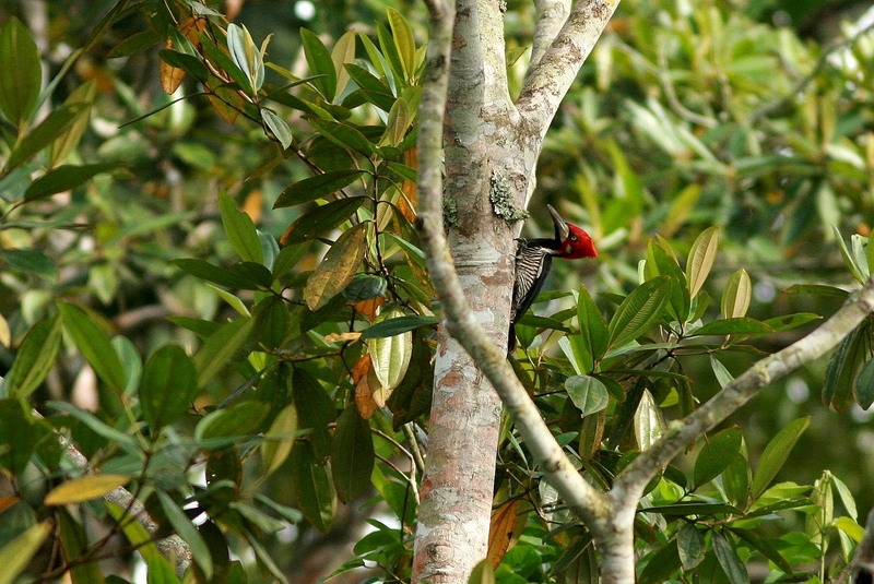 Crimson-Crested Woodpecker 28 cm Campephilus melanoleucos Pic de Malherbe Carpintero Garganta Negra Spots Obs : Yacumama Période : Commentaire :