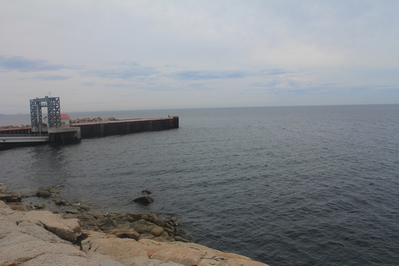 Stationnement près de l'embarcadère du traversier des Escoumins. Très tranquille pour bivouaquer, on peut y voir des petits rorquals et plus rarement des rorquals communs.