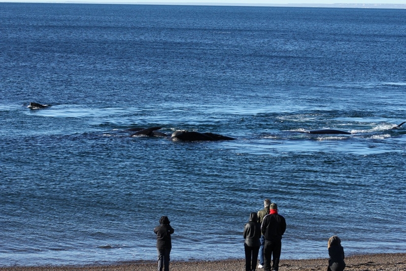 L’anti-Valdes par excellence. Au mois d’août, c’est surement le meilleur spot pour disfruter le spectacle offert par les baleines. On y a passé beaucoup de temps et on n’a pas regretté une minute. A marée haute, les baleines se rapprochent à moins de dix mètres et offrent un spectacle continu. Que ce soit en jouant avec les petits, en sautant, en tapant avec la queue ou les nageoires, il se passe toujours quelque chose. Le pire, c’est que le spectacle continu même la nuit. Les premières, c’est presque difficile de dormir tellement ces animaux sont vivants mais, on en redemande. Ca souffle, ça chante, ça tape des nageoires et parfois ça s’accouple. Les meilleurs moments sont au lever de soleil. Les lumières sont magiques et quand vous en avez plus d’une centaine qui évoluent tout près de vous, vous vous sentez ailleurs.