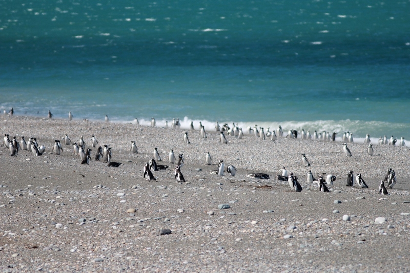 Prendre la piste 1 (et non 40 de l’Atlas de rutas) une quinzaine de km au sud de Rio Gallegos sur la gauche de la ruta 3. Piste plus ou moins bonne par endroits, longue de 120km. Aire de camping gratuite et libre (sans aucune commodité) en bas du phare. Area de pesca. L’entrée de la réserve est de 15pesos/pers. mais on n’a pas à repayer ensuite, et l'année suivante, on n'a pas payé du tout. C’est la seconde plus grande colonie de manchots de Magellan d’Amérique du sud (250 000 individus). Très impressionnant, surtout la vue sur la plage à partir du mirador.