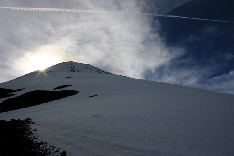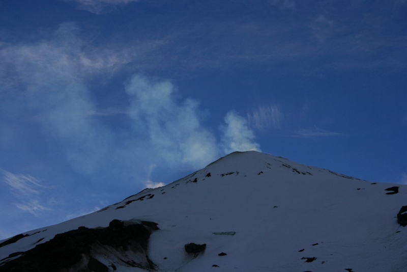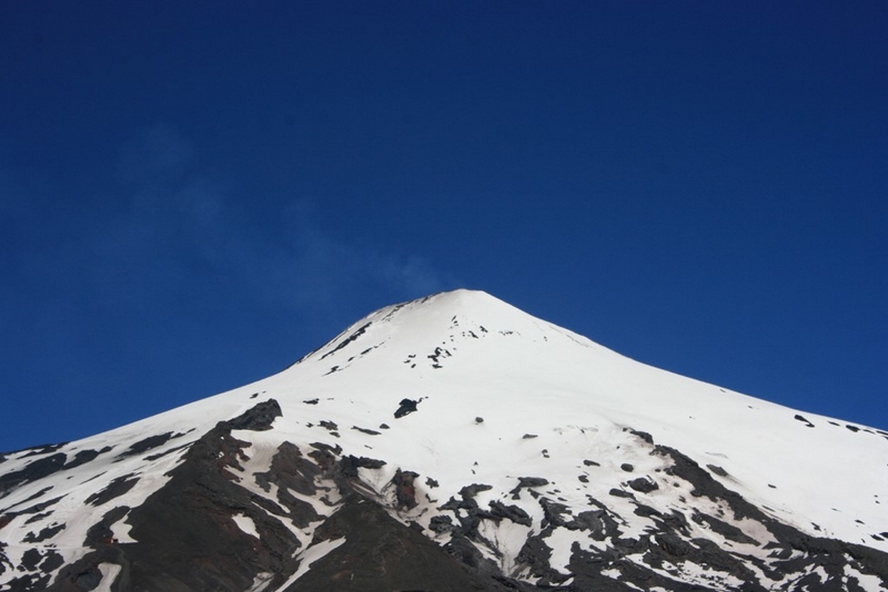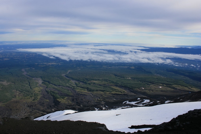 Pour monter sur le Villarrica sans guide par la voie officielle, il faut être équipé d'un casque, d'un piolet et de crampons. Sinon, Hervé s'est fait une montée en solo plus à l'est en prenant la première crête venue. Crampons nécessaires.