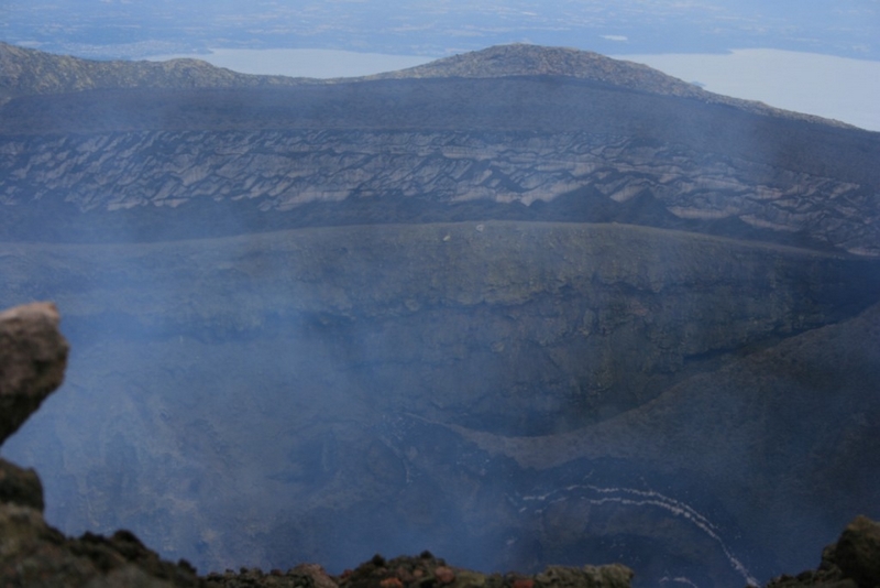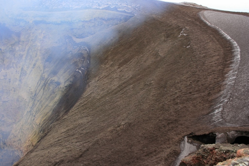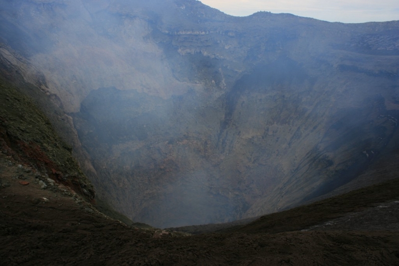 Bref, je suis passé de l’autre côté (surtout parce que je n’avais pas tous le matos exigé) et une fois en haut, quel spectacle. Ça gronde, ça fume, ça envoie des émanations pas très ragoutantes et de temps en temps, on voit de la lave projetée. Le panard intégral. Seul petit regret, on ne voit pas le lac de lave situé trop profond mais bon… là encore, c’est un des moments du voyage où l’on se sent ailleurs et c’est toujours difficile de décrocher d’un tel spectacle