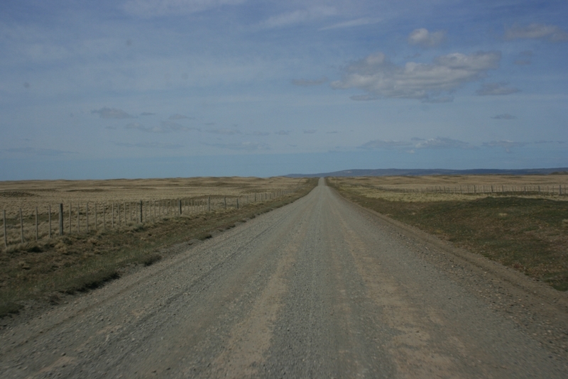 Portion de piste entre Onaisin et San Sebastian, menant en Terre de feu argentine. Sur le bord spoter le Short-Billed Miner.
