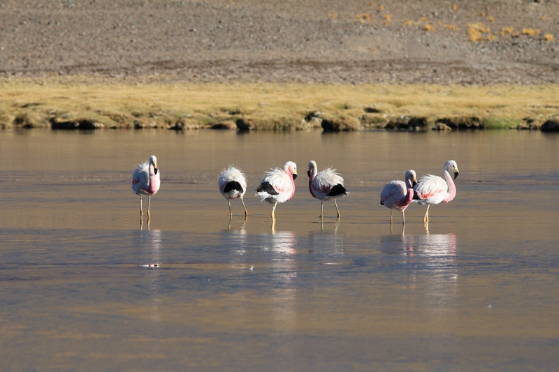 Les 3 flamingos Horned Coot Andean Avocet Andean Gull Puna Plover Rufous-Bellied Seedsnipe Mountain Caracara Puna Teal